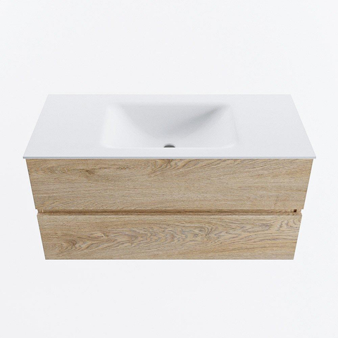 MONDIAZ VICA 100cm badmeubel onderkast Washed Oak 2 lades. Wastafel CLOUD midden zonder kraangat, kleur Talc.