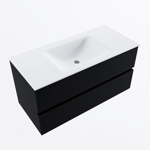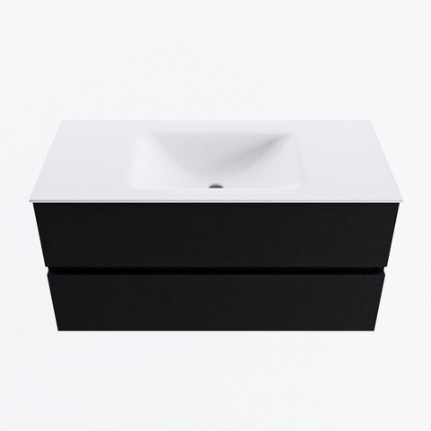 MONDIAZ VICA 100cm badmeubel onderkast Urban 2 lades. Wastafel CLOUD midden 1 kraangat, kleur Talc.