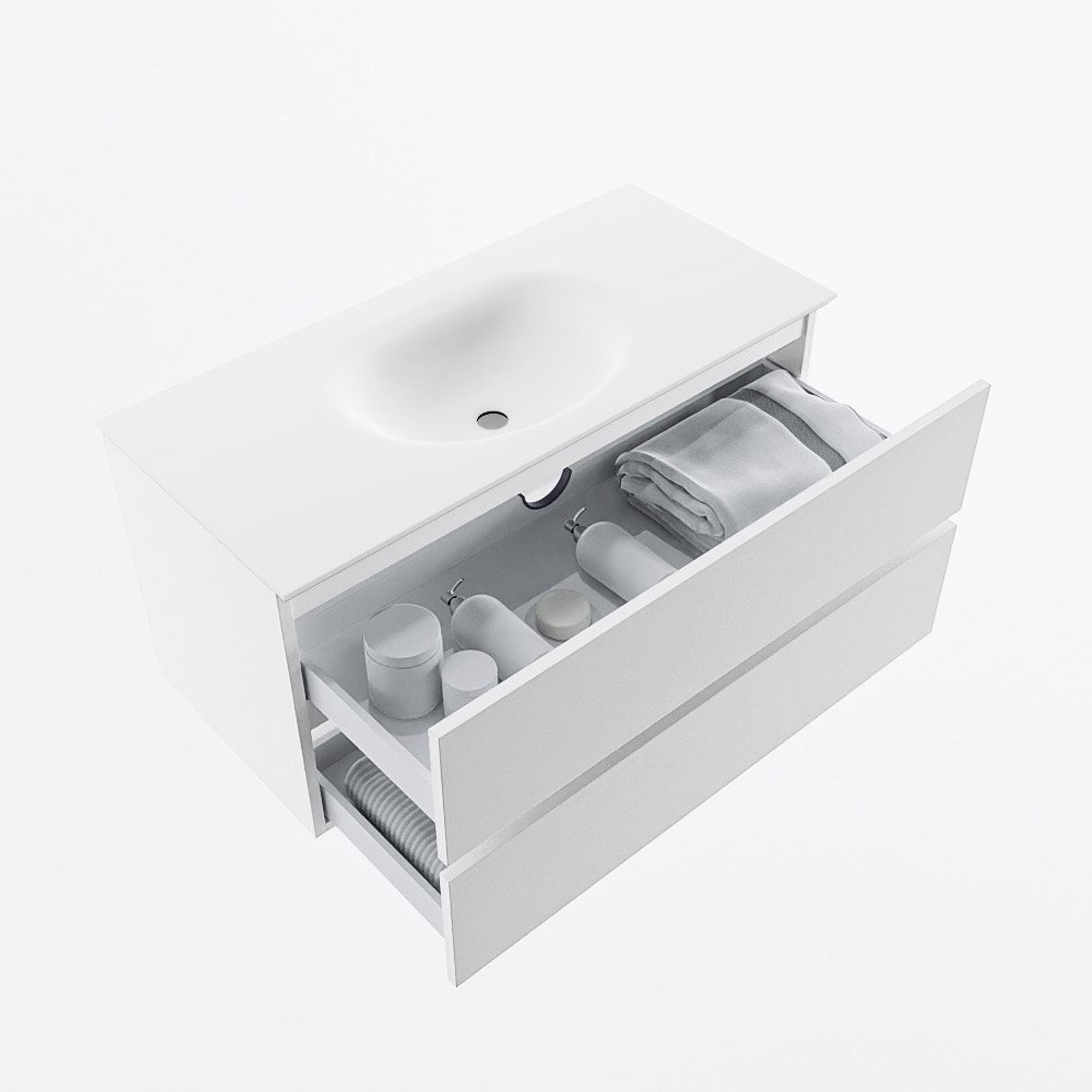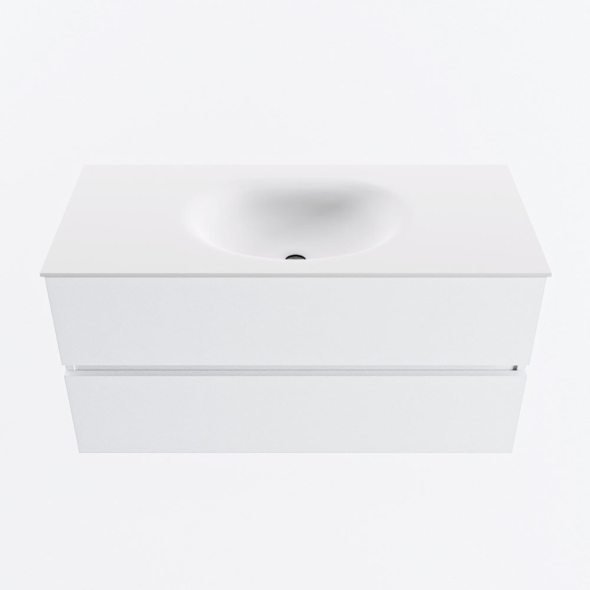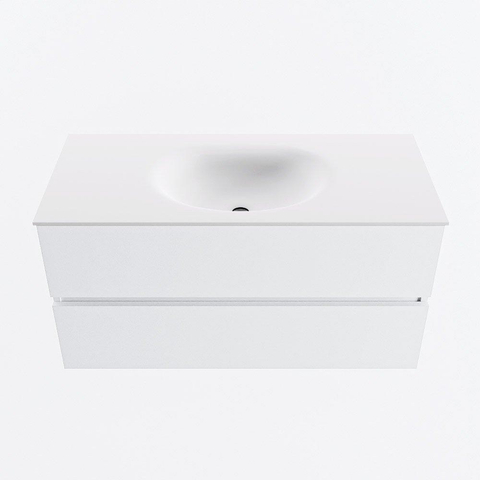 MONDIAZ VICA 100cm badmeubel onderkast Talc 2 lades. Wastafel MOON midden 1 kraangat, kleur Talc.