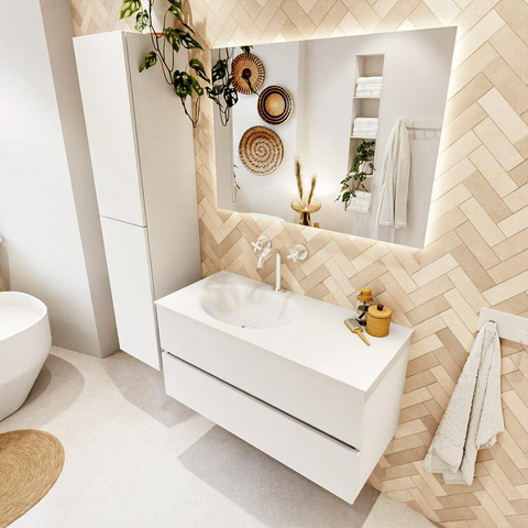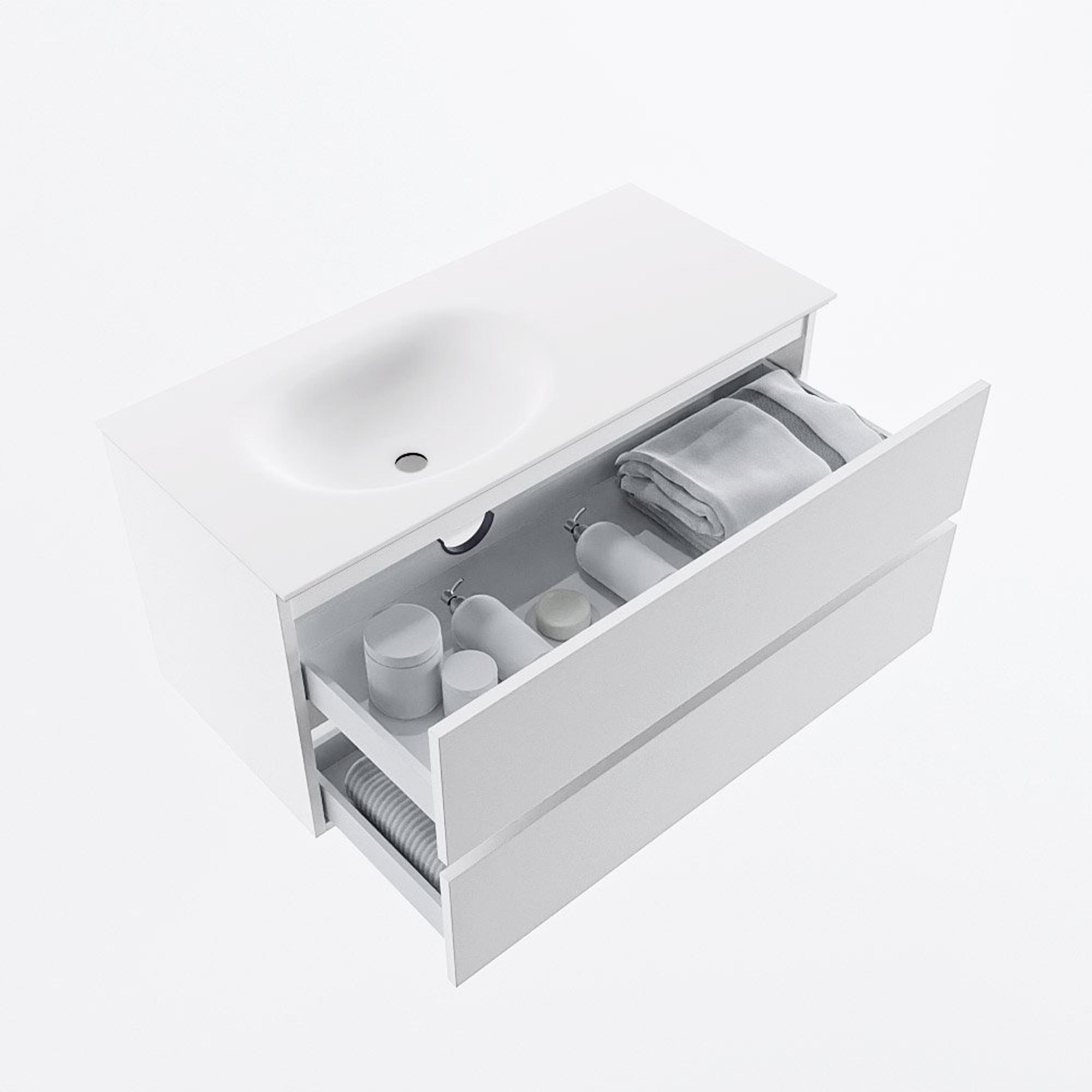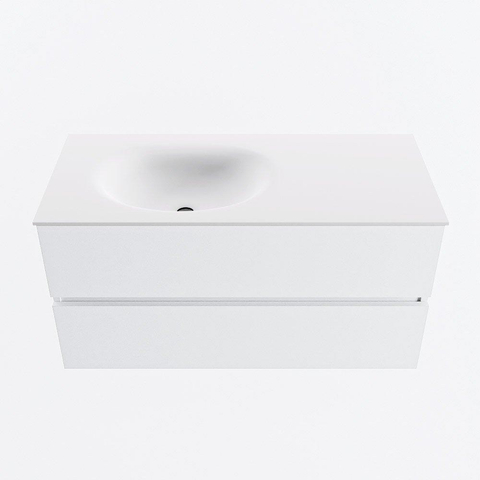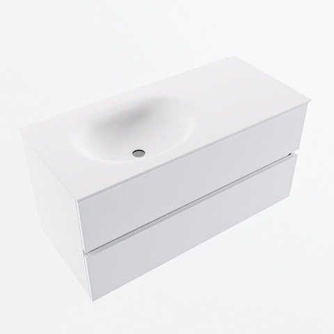 MONDIAZ VICA 100cm badmeubel onderkast Talc 2 lades. Wastafel MOON links 1 kraangat, kleur Talc.