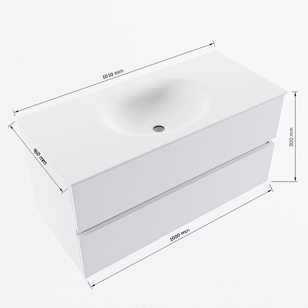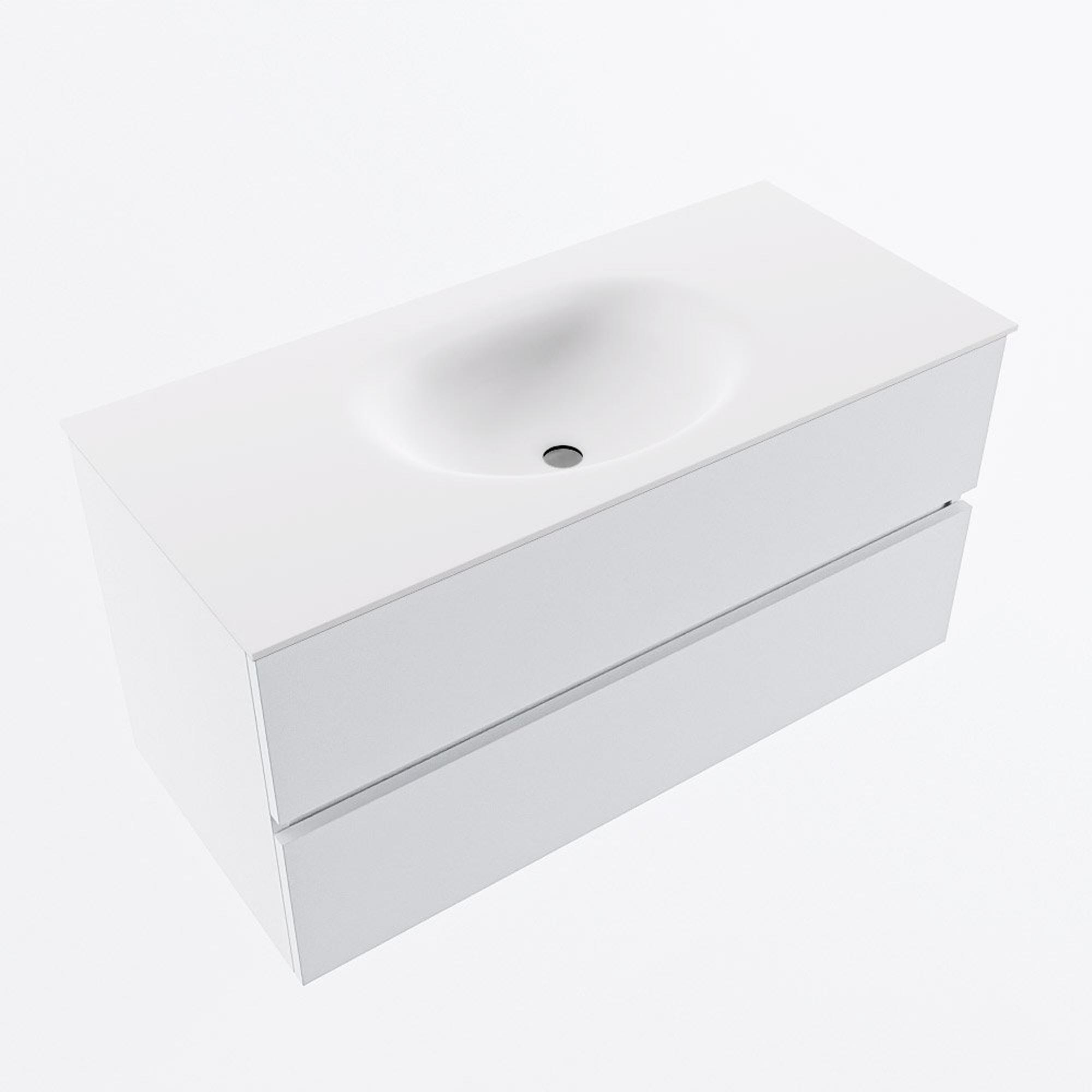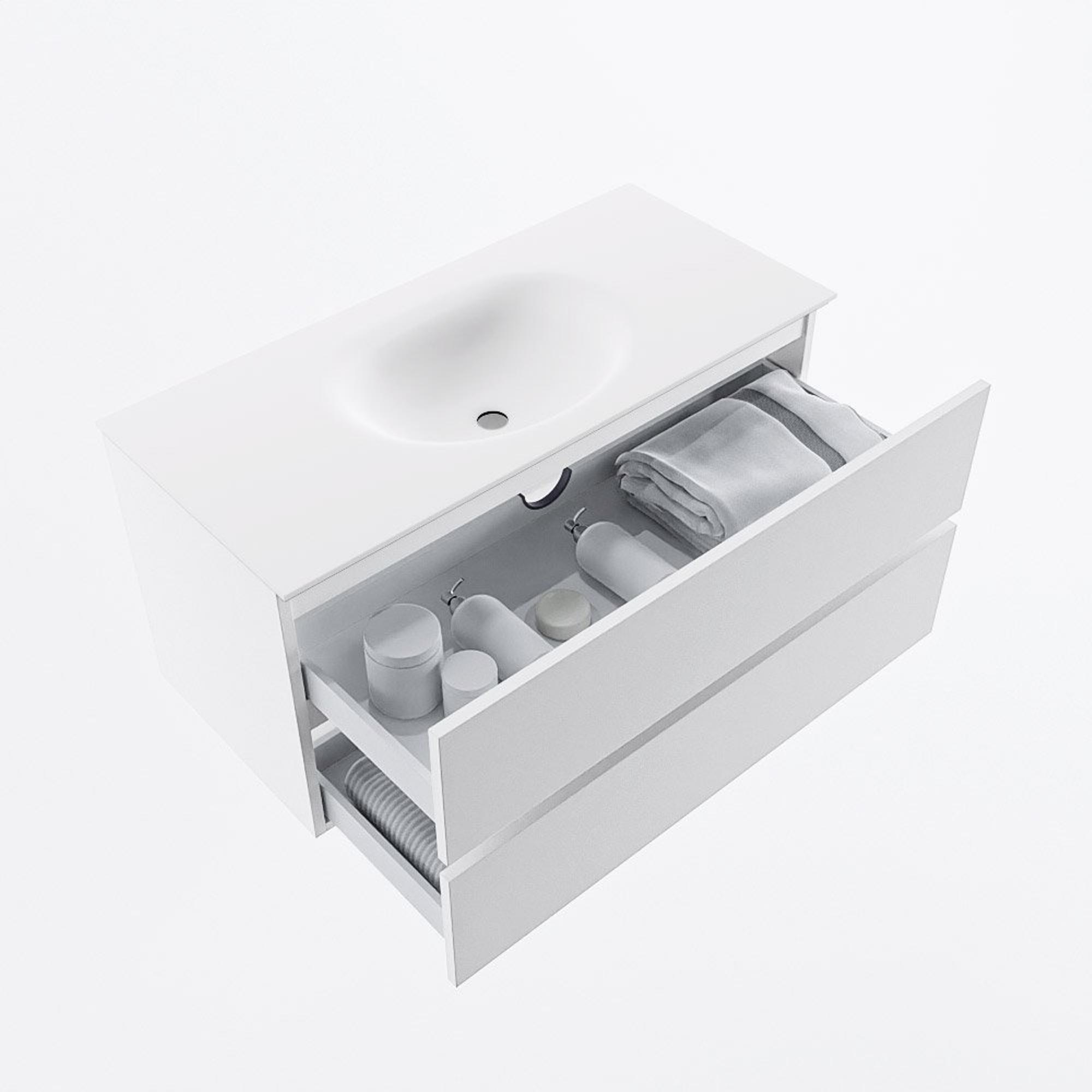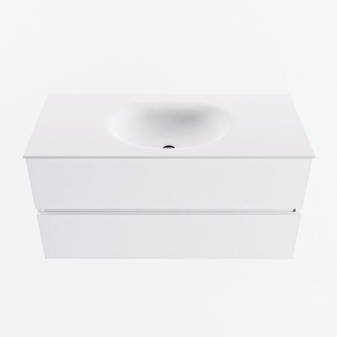 MONDIAZ VICA 100cm badmeubel onderkast Talc 2 lades. Wastafel MOON midden zonder kraangat, kleur Talc.
