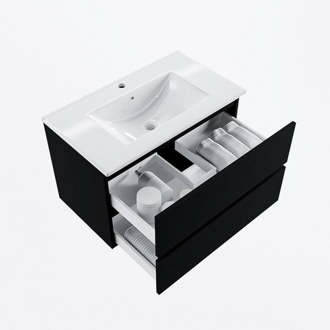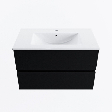 MONDIAZ VICA 80cm badmeubel onderkast Urban 2 lades. Wastafel DENIA midden 1 kraangat, kleur Glanzend Wit.