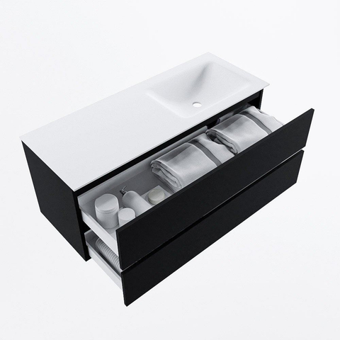 MONDIAZ VICA 120cm badmeubel onderkast Urban 2 lades. Wastafel CLOUD rechts 1 kraangat, kleur Talc.