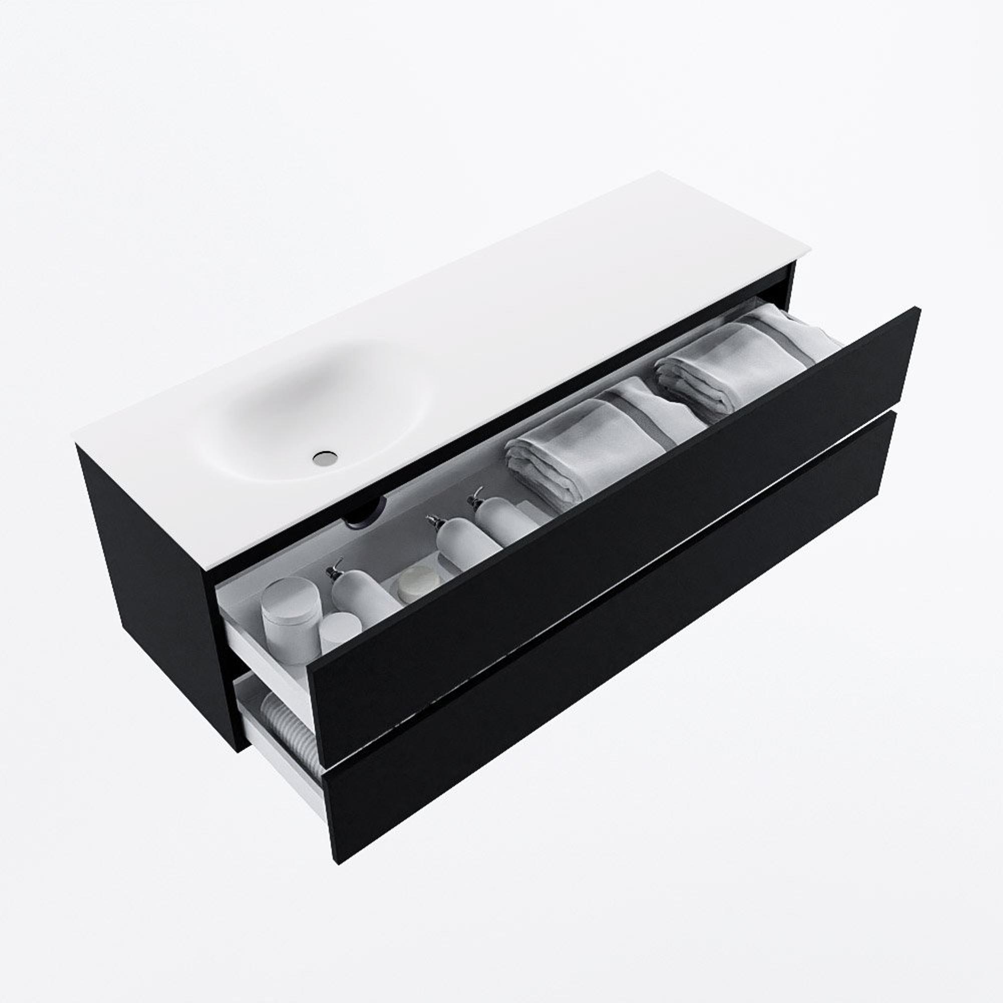 MONDIAZ VICA 150cm badmeubel onderkast Urban 2 lades. Wastafel MOON links 1 kraangat, kleur Talc.