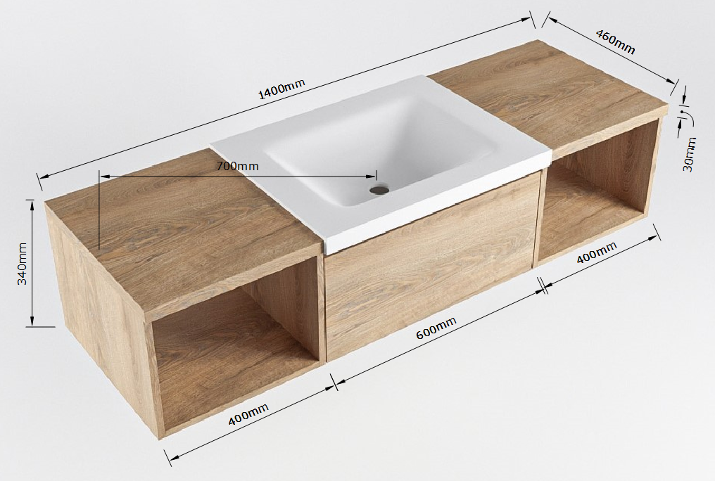 Naast zijn esthetische waarde is dit badmeubel ook zeer functioneel. De 140cm breedte zorgt voor voldoende ruimte, terwijl de lade en open module handige opbergmogelijkheden bieden voor al jouw badkamerspullen. De wastafel met 1 kraangat maakt het gemakkelijk om jouw handen te wassen of tanden te poetsen.