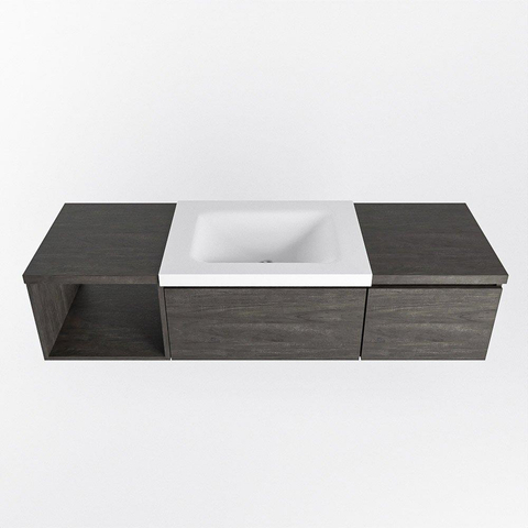 MONDIAZ BUKLA 140cm badmeubel met open module 40 links kleur Dark Brown met 2 lades. Wastafel CLOUD midden 0 kraangaten kleur Talc.