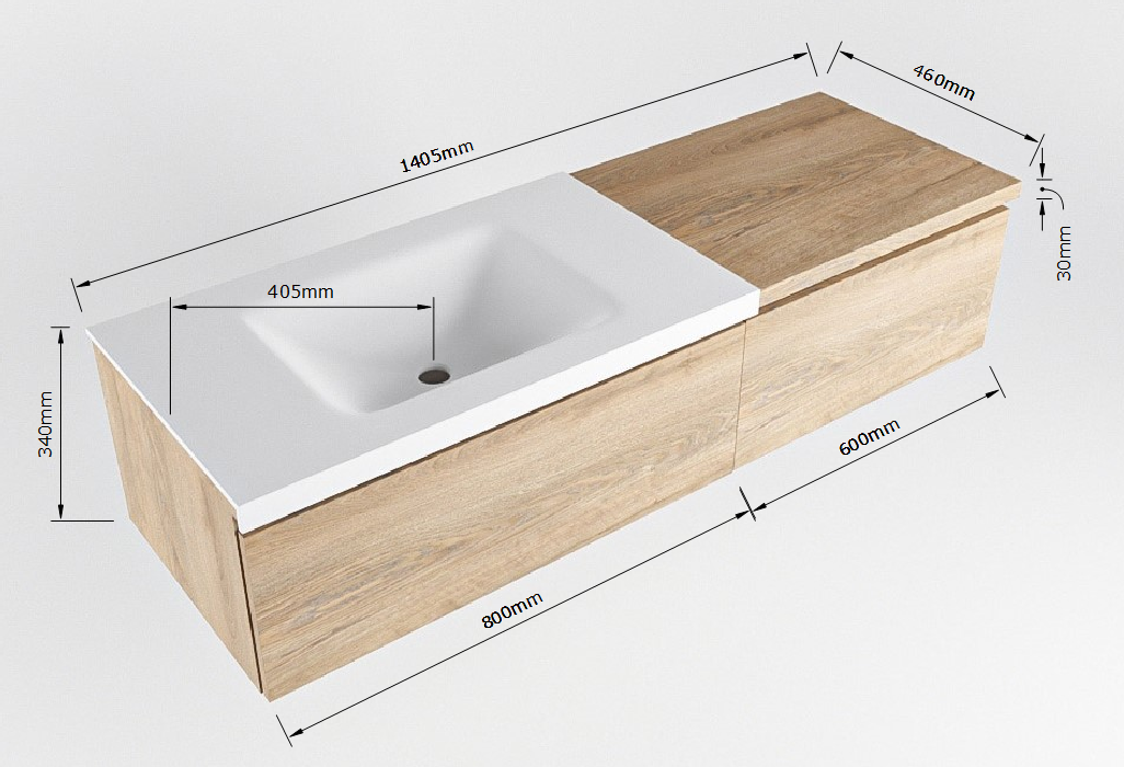 Naast zijn esthetische waarde is dit badmeubel ook zeer praktisch in gebruik. De ruime wastafel biedt voldoende ruimte voor dagelijkse verzorging, terwijl de lades gemakkelijk toegang bieden tot je benodigdheden. Dit meubel combineert stijl en functionaliteit op een perfecte manier.
