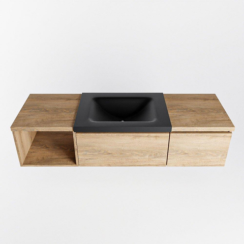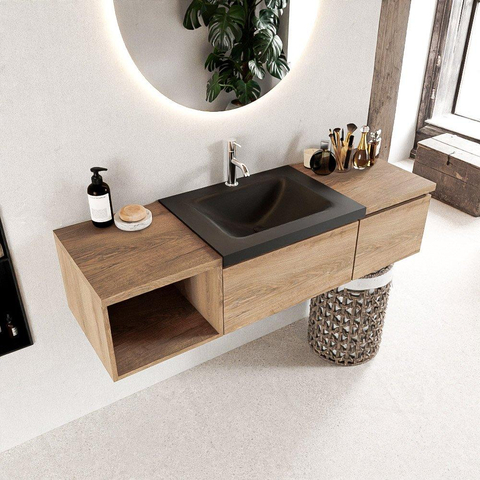 MONDIAZ BUKLA 140cm badmeubel met open module 40 links kleur Washed Oak met 2 lades. Wastafel CLOUD midden 1 kraangat kleur Urban.