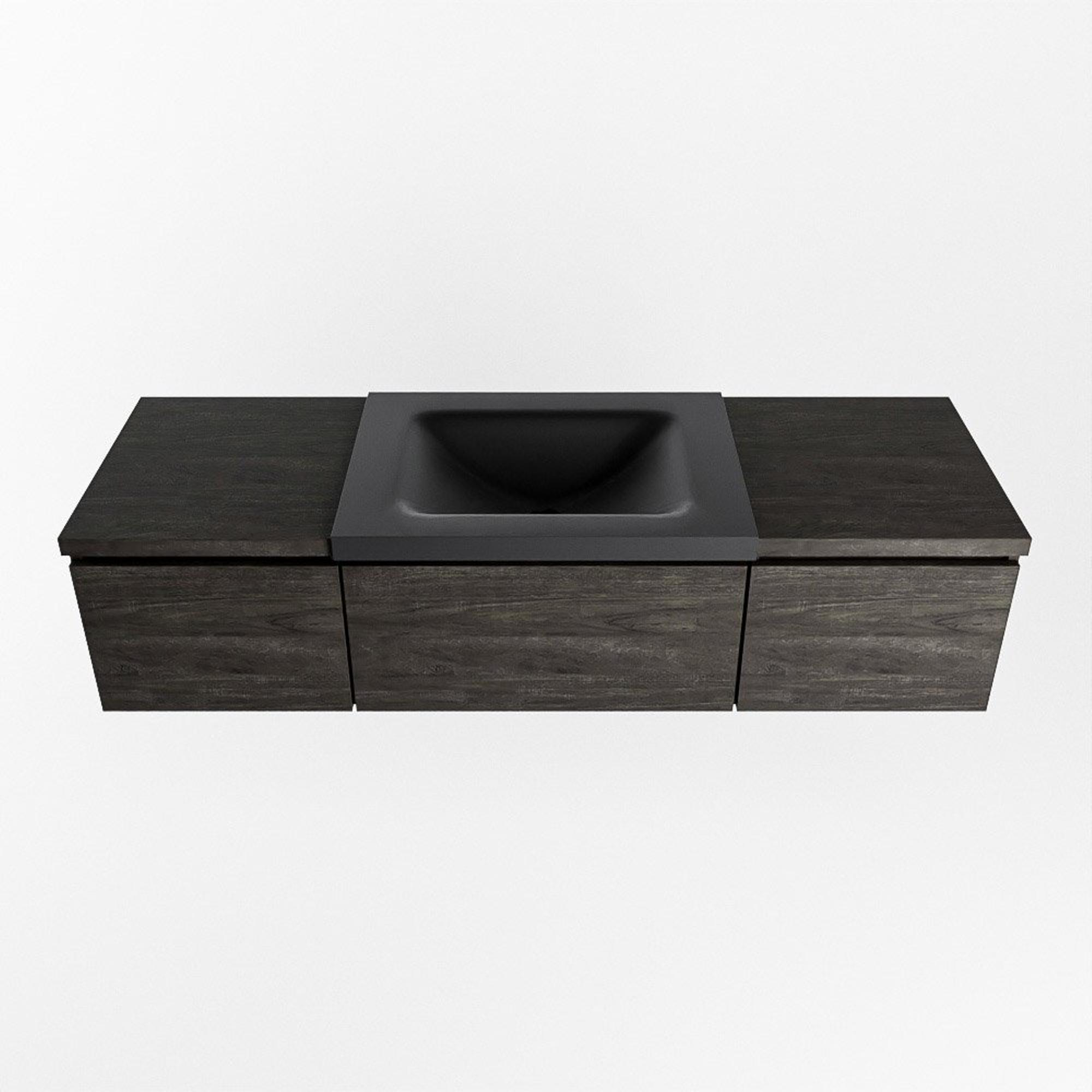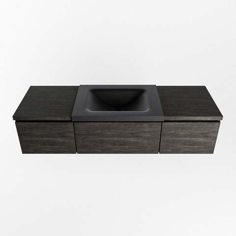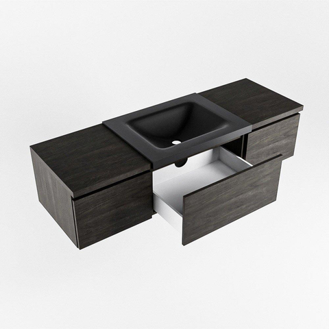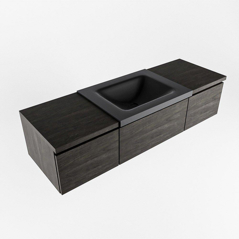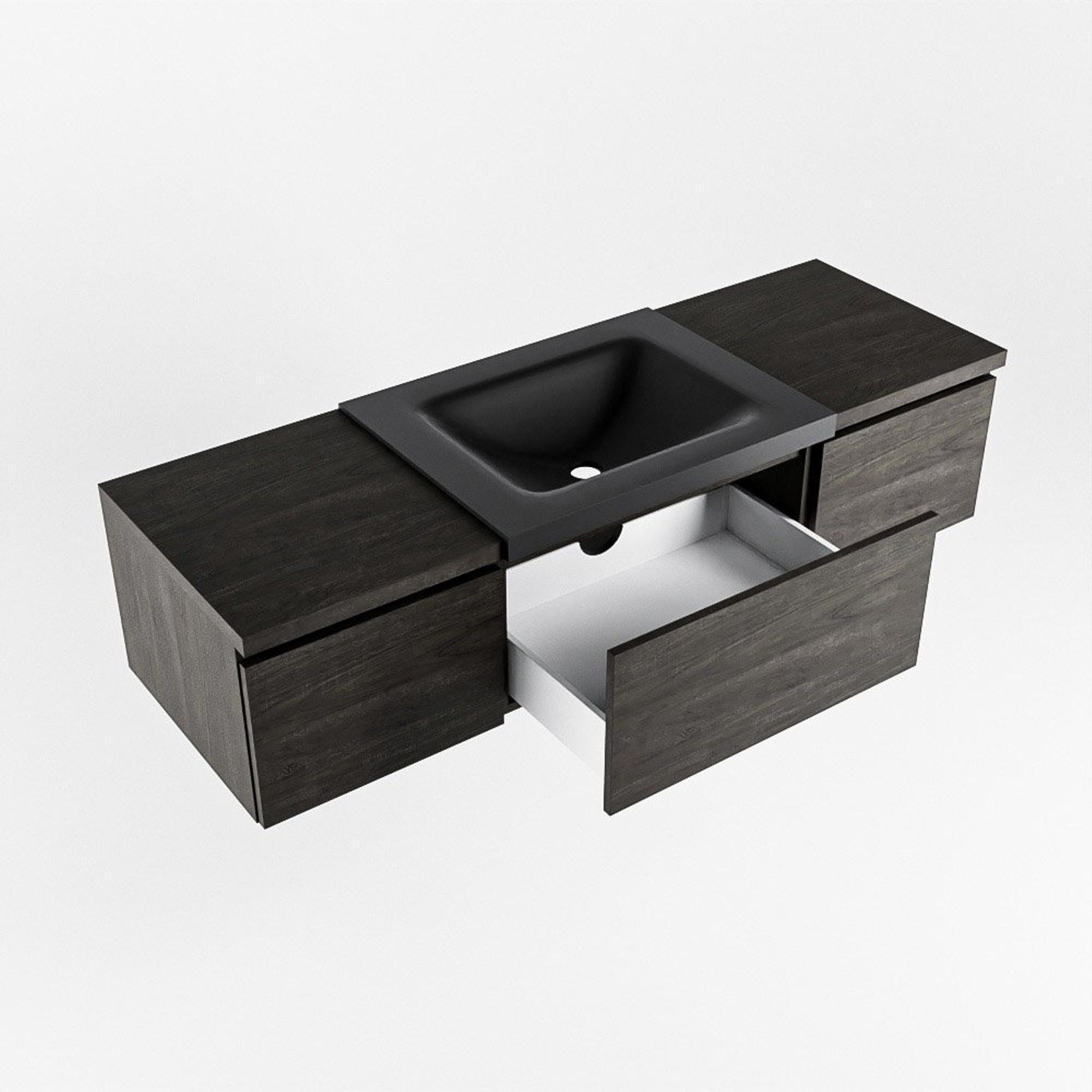 MONDIAZ BUKLA 140cm badmeubel met module 40 kleur Dark Brown met 3 lades. Wastafel CLOUD midden 1 kraangat kleur Urban.