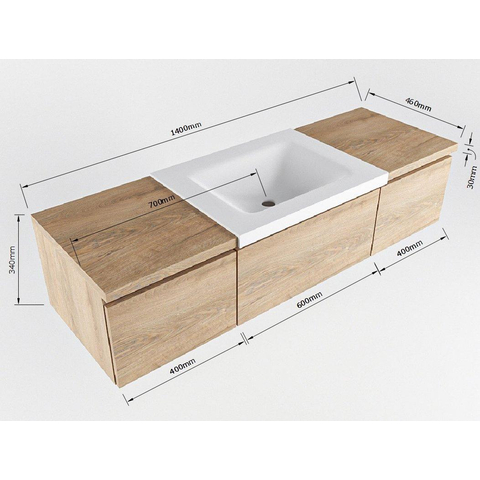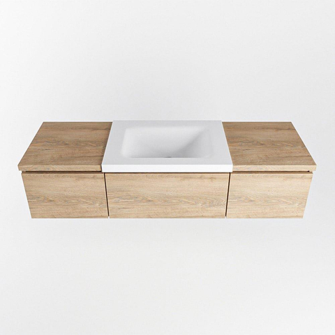 MONDIAZ BUKLA 140cm badmeubel met module 40 kleur Washed Oak met 3 lades. Wastafel CLOUD midden 1 kraangat kleur Talc.
