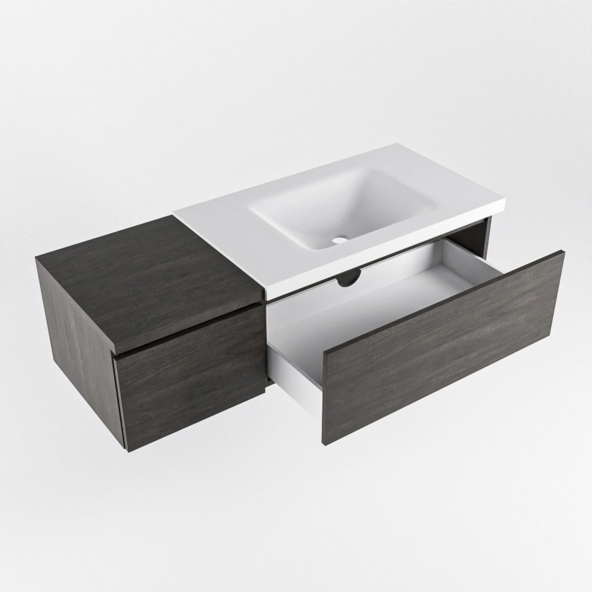 MONDIAZ BUKLA 120cm badmeubel met module 40 kleur Dark Brown met 2 lades. Wastafel CLOUD rechts 0 kraangaten kleur Talc.