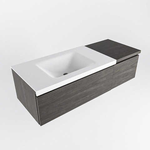 MONDIAZ BUKLA 120cm badmeubel met module 40 kleur Dark Brown met 2 lades. Wastafel CLOUD links 1 kraangat kleur Talc.