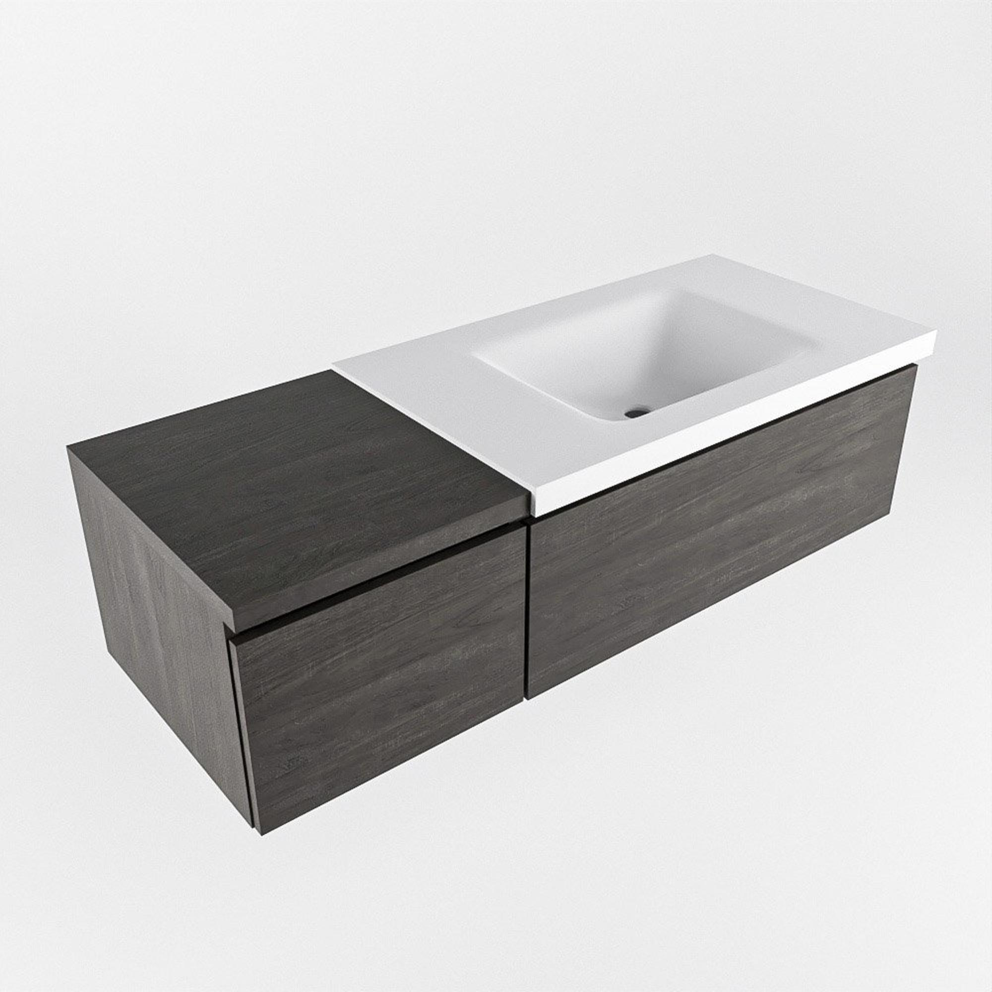 MONDIAZ BUKLA 120cm badmeubel met module 40 kleur Dark Brown met 2 lades. Wastafel CLOUD rechts 1 kraangat kleur Talc.