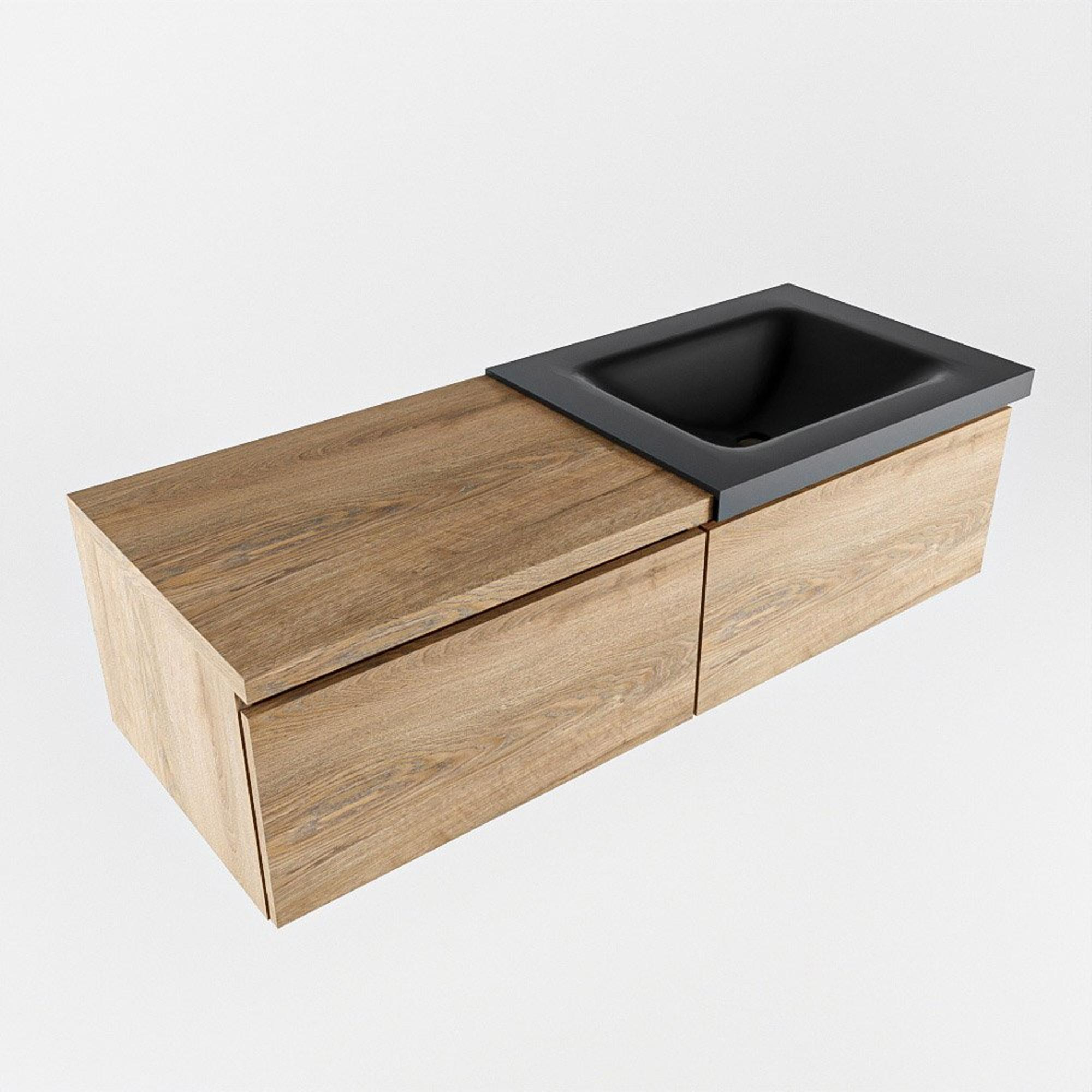 MONDIAZ BUKLA 120cm badmeubel met module 60 kleur Washed Oak met 2 lades. Wastafel CLOUD rechts 0 kraangaten kleur Urban.