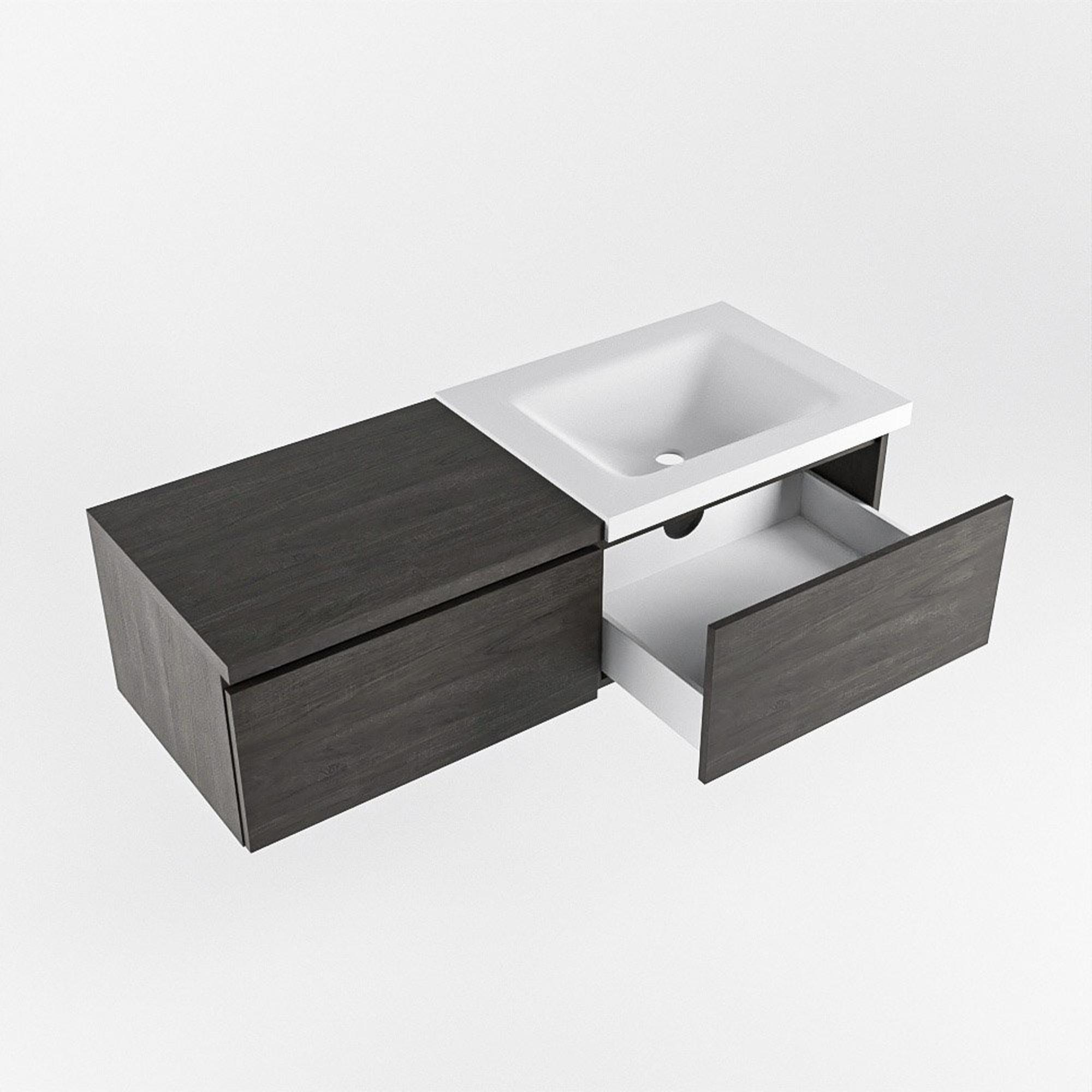 MONDIAZ BUKLA 120cm badmeubel met module 60 kleur Dark Brown met 2 lades. Wastafel CLOUD rechts 0 kraangaten kleur Talc.
