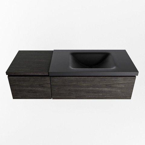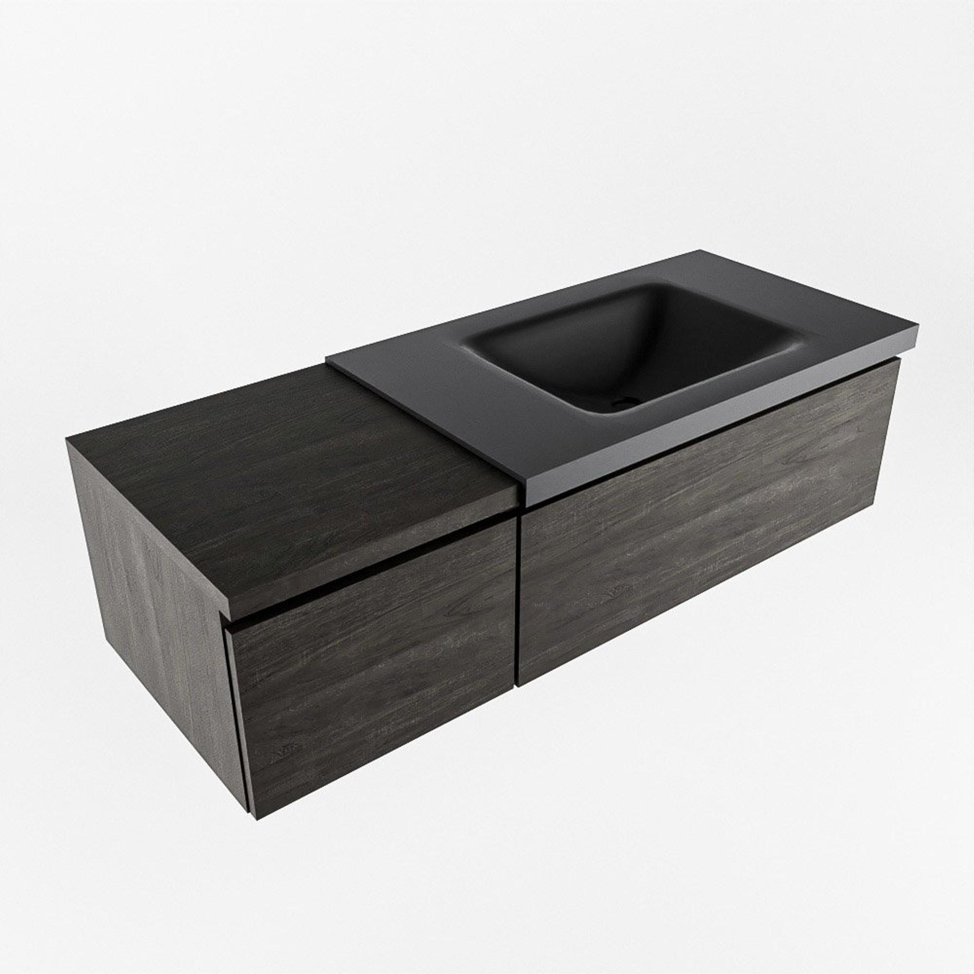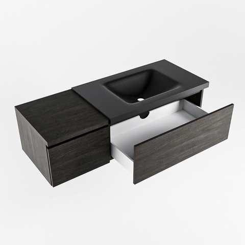 MONDIAZ BUKLA 120cm badmeubel met module 40 kleur Dark Brown met 2 lades. Wastafel CLOUD rechts 0 kraangaten kleur Urban.