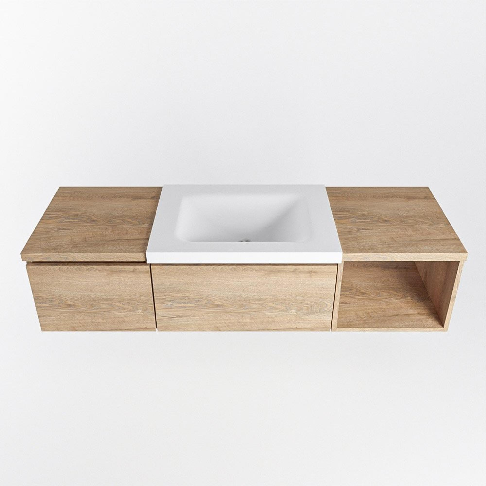 MONDIAZ BUKLA 140cm badmeubel met open module 40 rechts kleur Washed Oak met 2 lades. Wastafel CLOUD midden 0 kraangaten kleur Talc.
