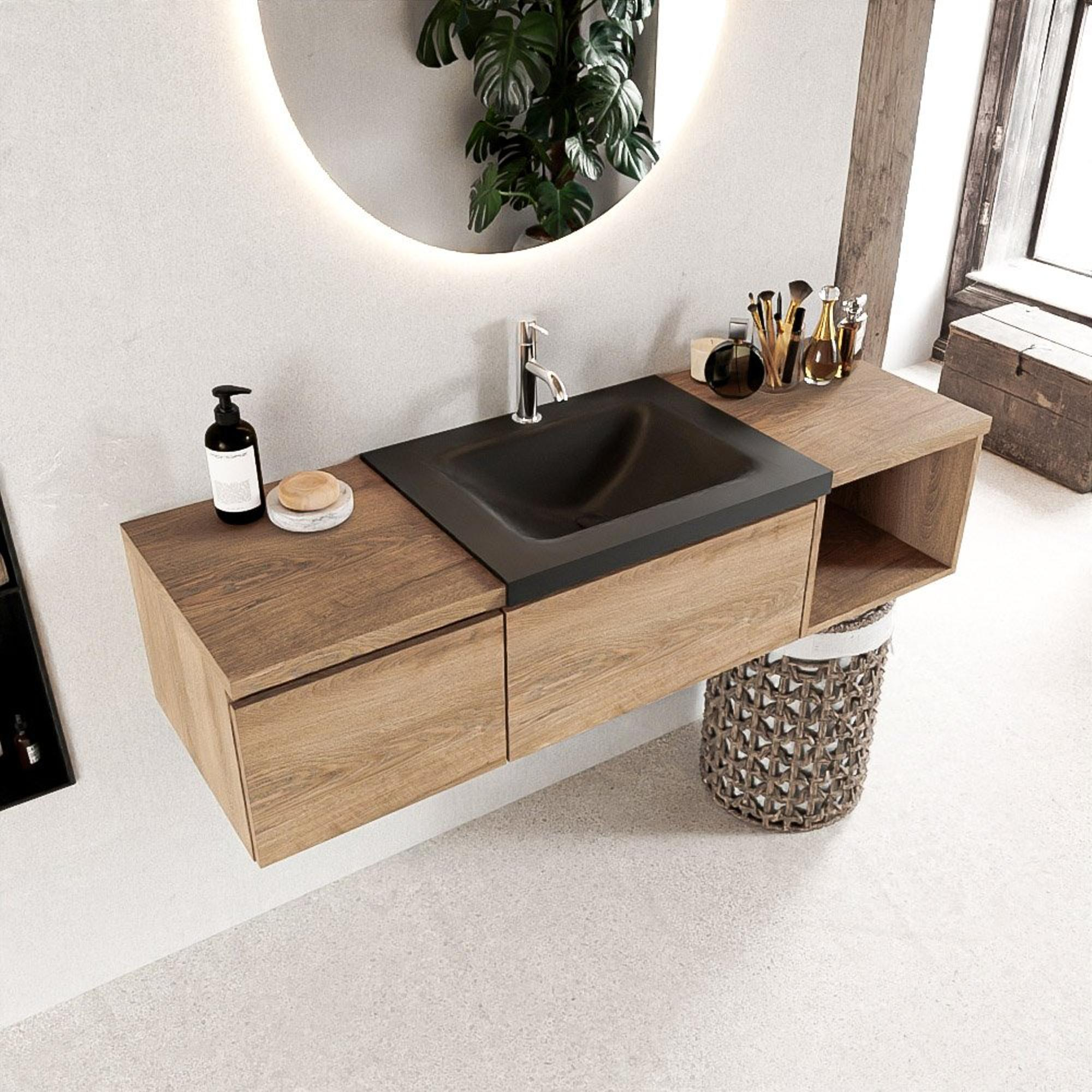 MONDIAZ BUKLA 140cm badmeubel met open module 40 rechts kleur Washed Oak met 2 lades. Wastafel CLOUD midden 1 kraangat kleur Urban.