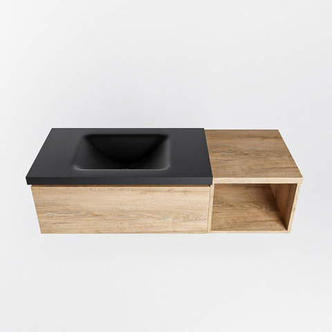 MONDIAZ BUKLA 120cm badmeubel met open module 40 kleur Washed Oak met 1 lade. Wastafel CLOUD links 0 kraangaten kleur Urban.