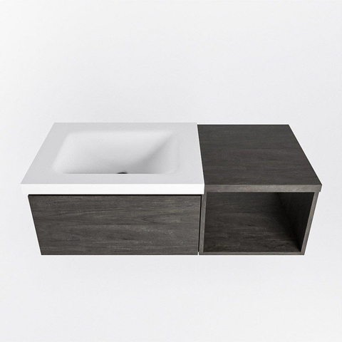MONDIAZ BUKLA 100cm badmeubel met open module 40 kleur Dark Brown met 1 lade. Wastafel CLOUD links 0 kraangaten kleur Talc.