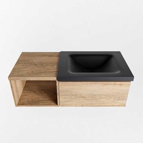 MONDIAZ BUKLA 100cm badmeubel met open module 40 kleur Washed Oak met 1 lade. Wastafel CLOUD rechts 0 kraangaten kleur Urban.