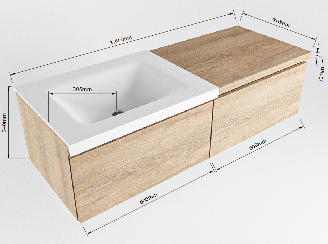 Niet alleen is dit badmeubel een lust voor het oog, het is ook zeer functioneel. De 120cm breedte biedt voldoende ruimte voor al je badkamerspullen, terwijl de 60cm module extra opbergruimte creëert. De 0 kraangaten op de wastafel geven je de vrijheid om zelf de perfecte kraan te kiezen die bij jouw stijl past.