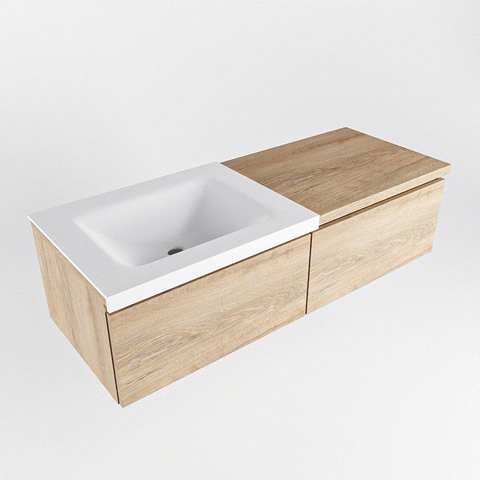 MONDIAZ BUKLA 120cm badmeubel met module 60 kleur Washed Oak met 2 lades. Wastafel CLOUD links 0 kraangaten kleur Talc.