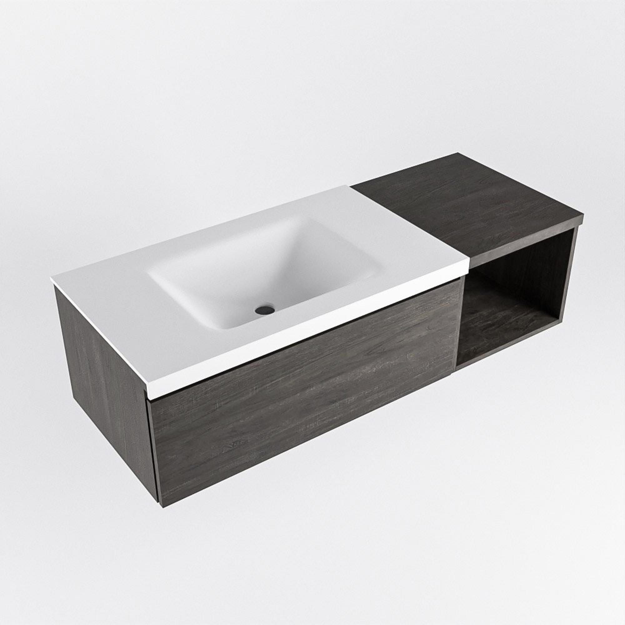 MONDIAZ BUKLA 120cm badmeubel met open module 40 kleur Dark Brown met 1 lade. Wastafel CLOUD links 0 kraangaten kleur Talc.