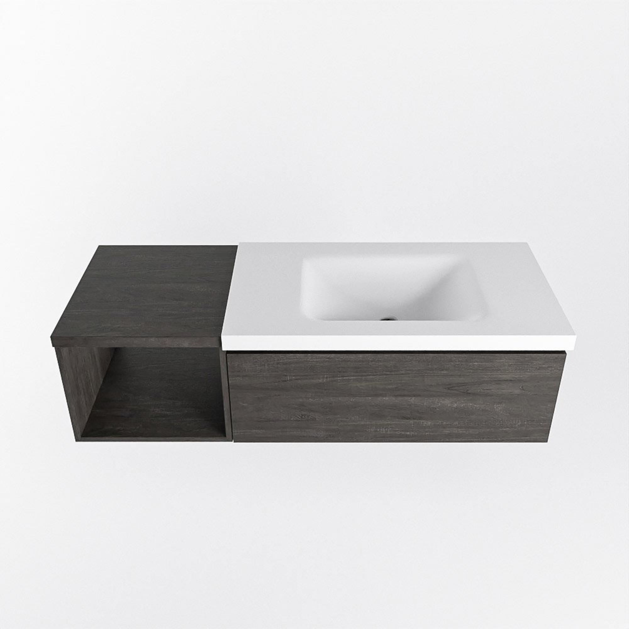 MONDIAZ BUKLA 120cm badmeubel met open module 40 kleur Dark Brown met 1 lade. Wastafel CLOUD rechts 1 kraangat kleur Talc.
