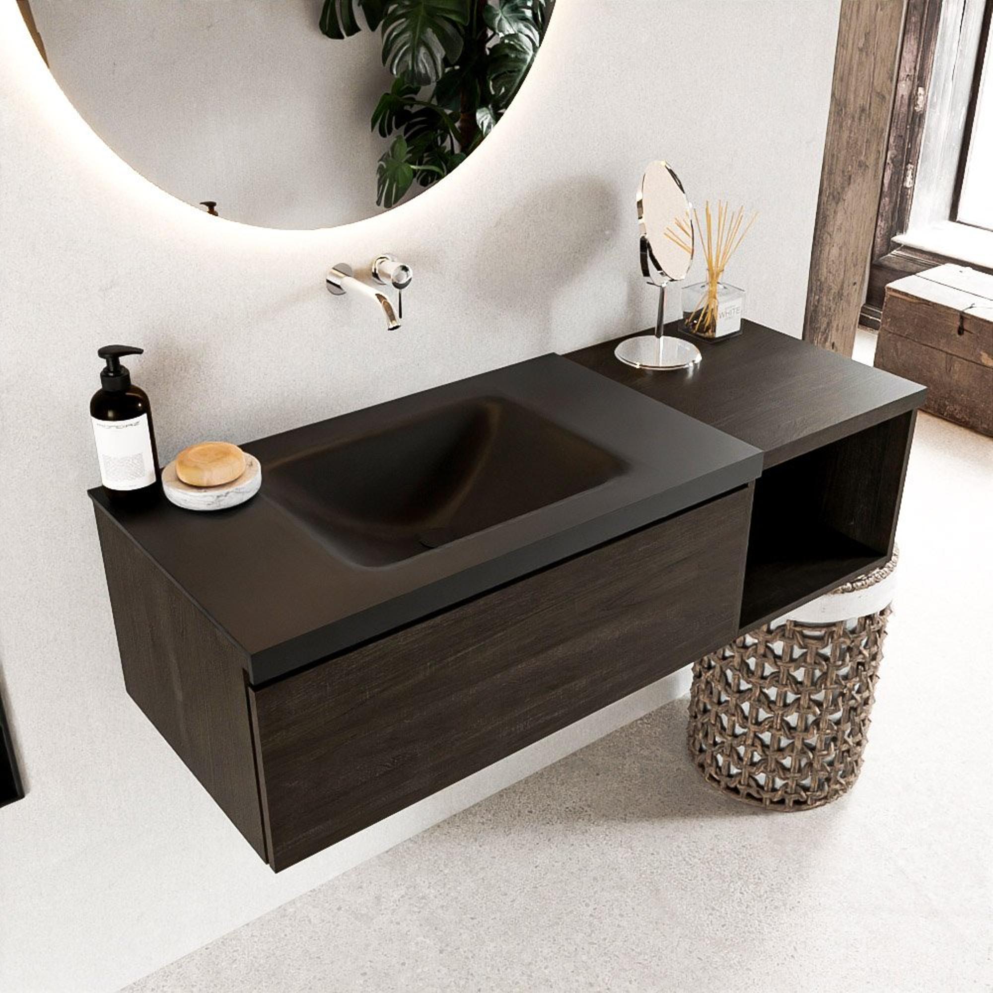 Niet alleen is dit badmeubel een esthetische toevoeging aan jouw badkamer, maar het is ook uiterst praktisch in gebruik. De ruime wastafel biedt voldoende ruimte voor dagelijkse verzorging, terwijl de lade en open module zorgen voor georganiseerde opslag van al jouw spullen.