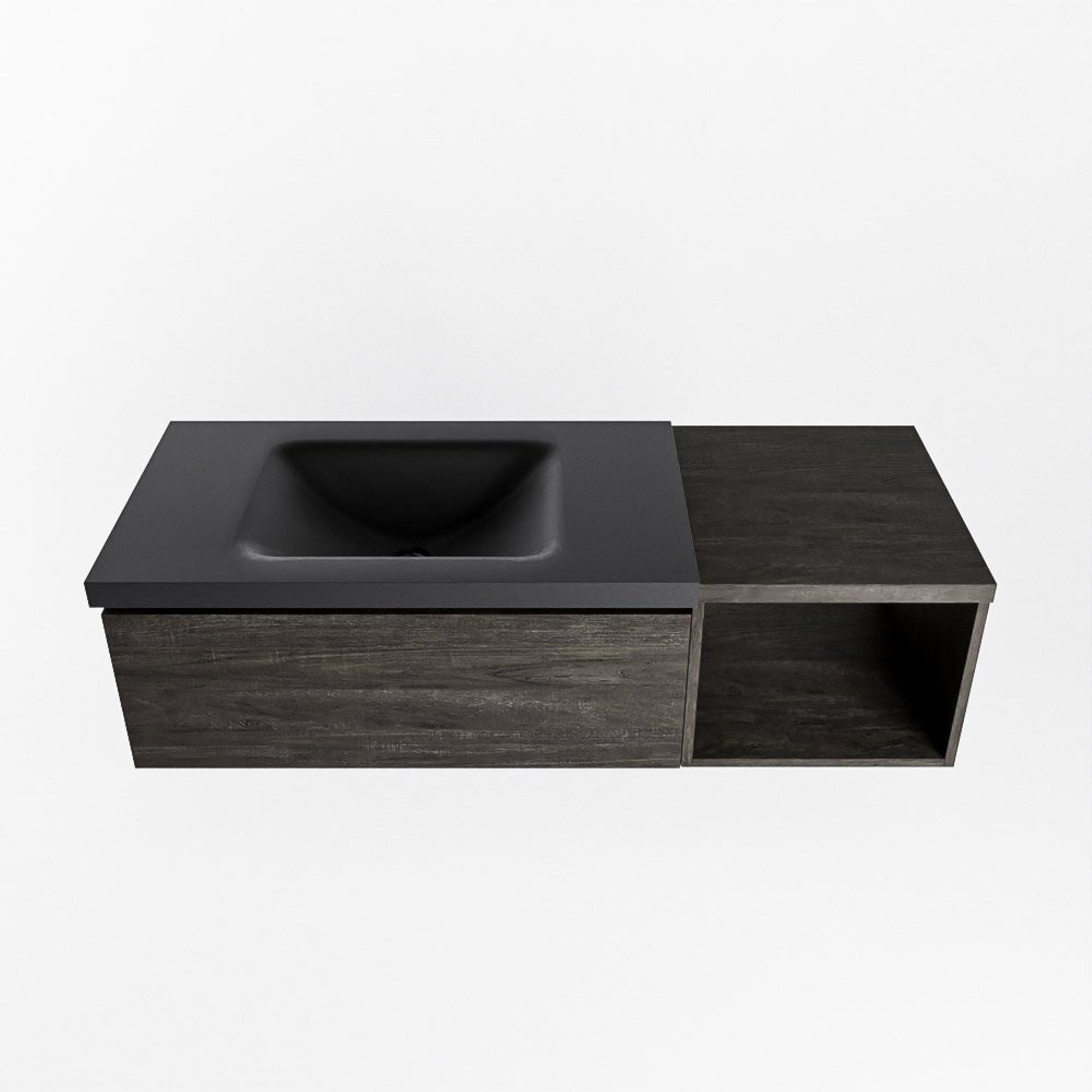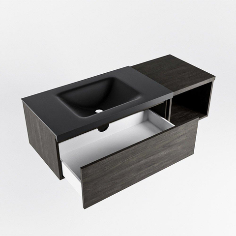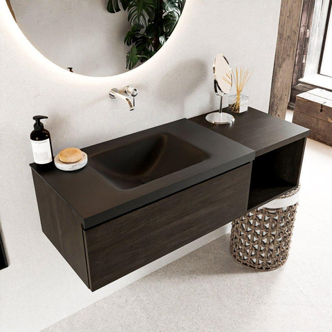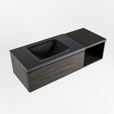 MONDIAZ BUKLA 120cm badmeubel met open module 40 kleur Dark Brown met 1 lade. Wastafel CLOUD links 0 kraangaten kleur Urban.