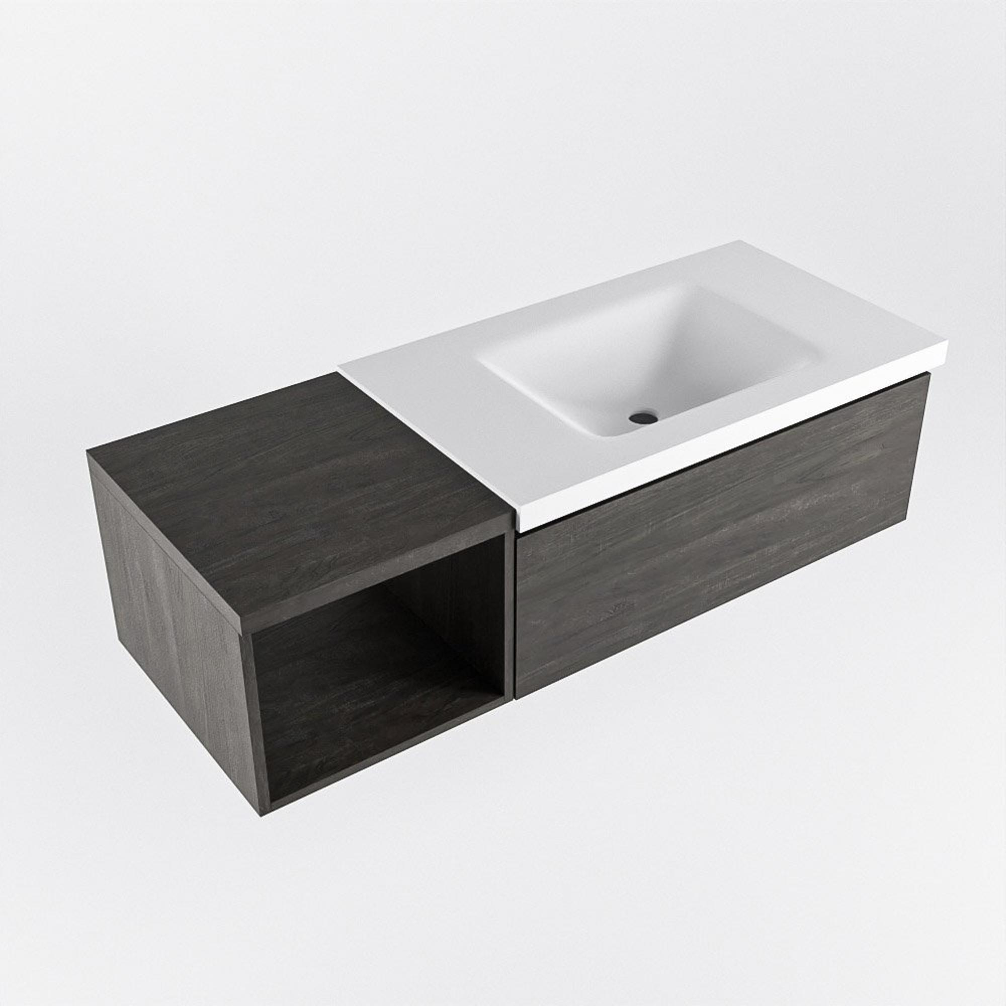 MONDIAZ BUKLA 120cm badmeubel met open module 40 kleur Dark Brown met 1 lade. Wastafel CLOUD rechts 0 kraangaten kleur Talc.