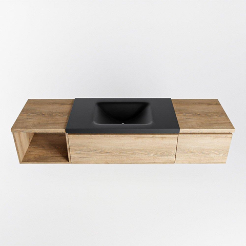 MONDIAZ BUKLA 160cm badmeubel met open module 40 links kleur Washed Oak met 2 lades. Wastafel CLOUD midden 0 kraangaten kleur Urban.