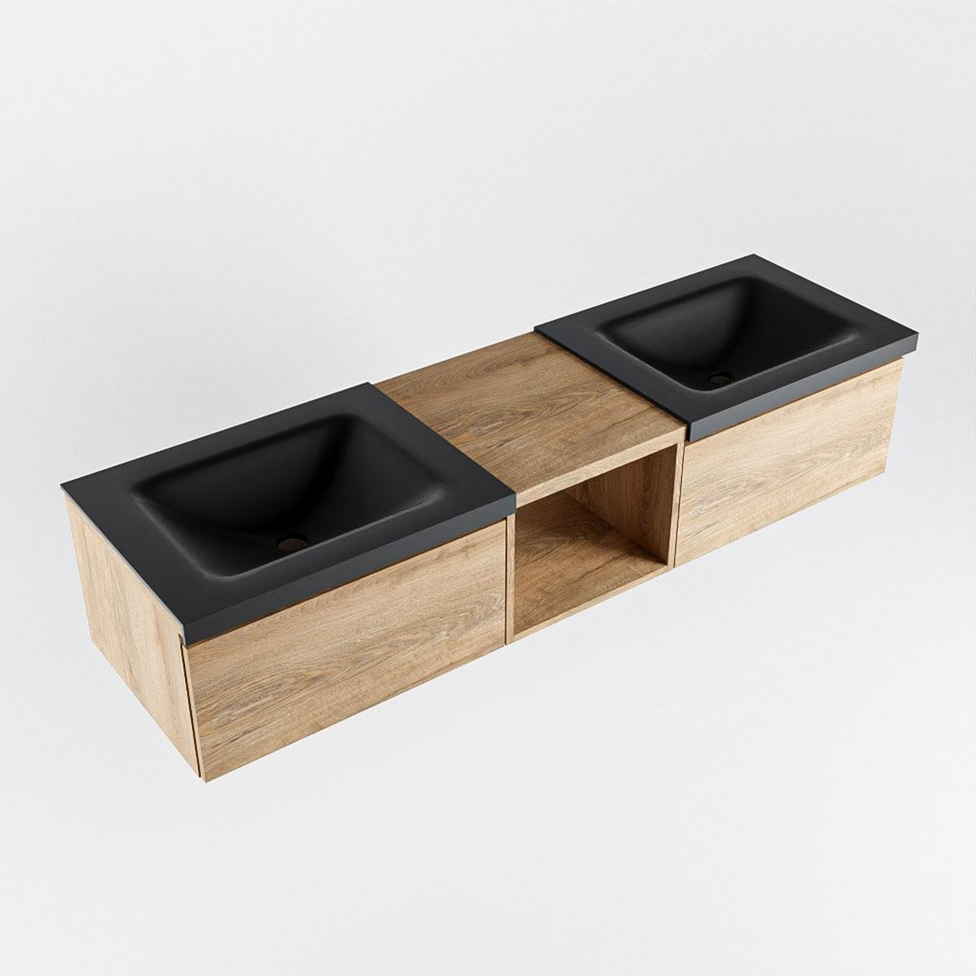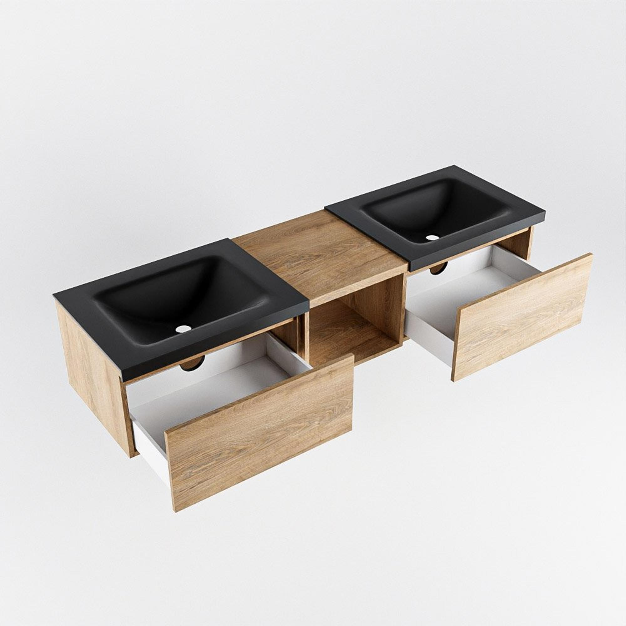 MONDIAZ BUKLA 160cm badmeubel met open module 40 kleur Washed Oak met 2 lades. Wastafel CLOUD dubbel 0 kraangaten kleur Urban.