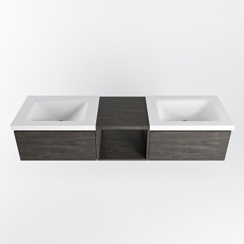 MONDIAZ BUKLA 160cm badmeubel met open module 40 kleur Dark Brown met 2 lades. Wastafel CLOUD dubbel 2 kraangaten kleur Talc.