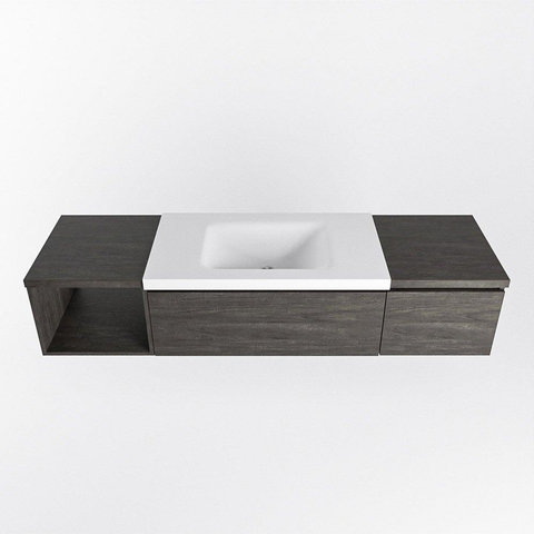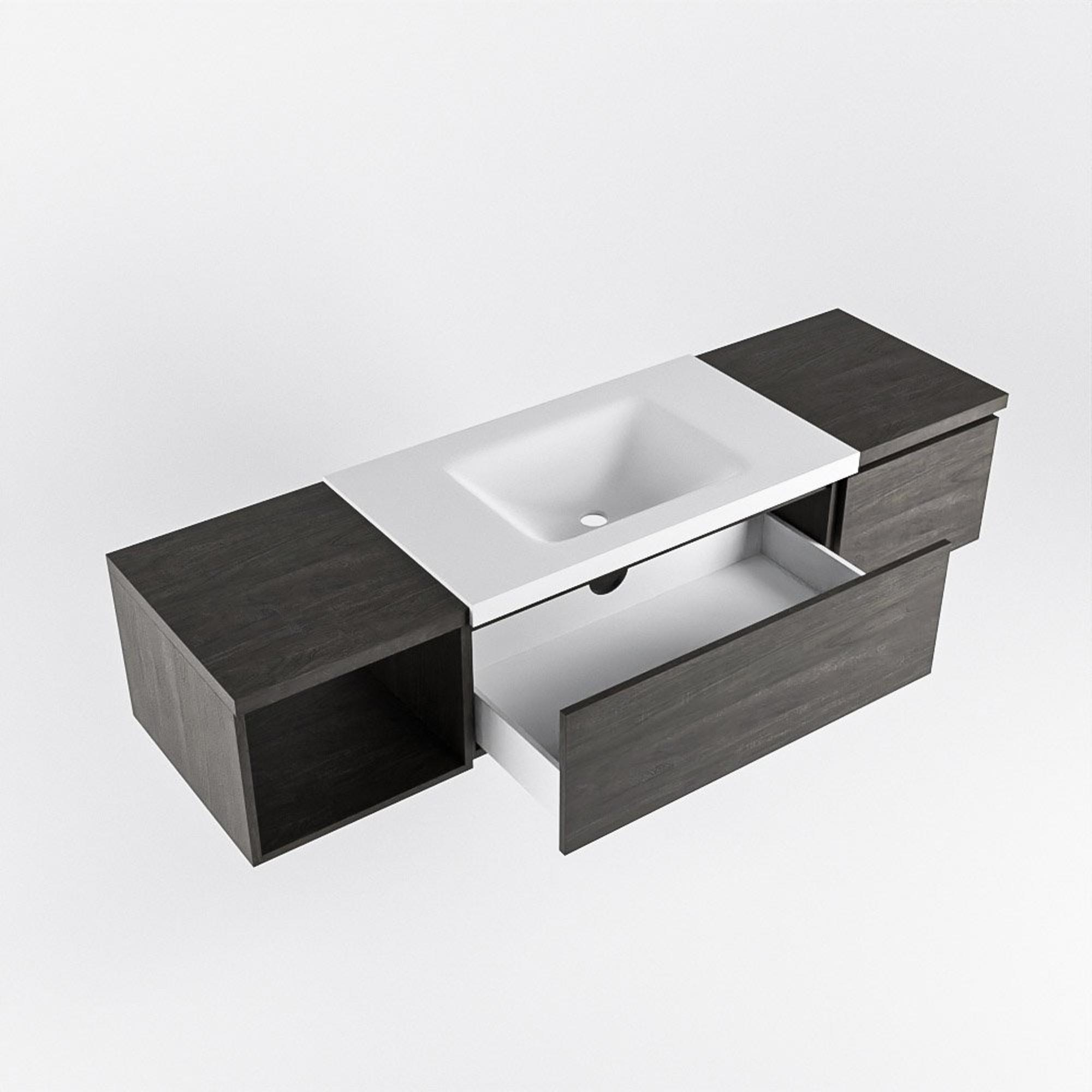 MONDIAZ BUKLA 160cm badmeubel met open module 40 links kleur Dark Brown met 2 lades. Wastafel CLOUD midden 1 kraangat kleur Talc.