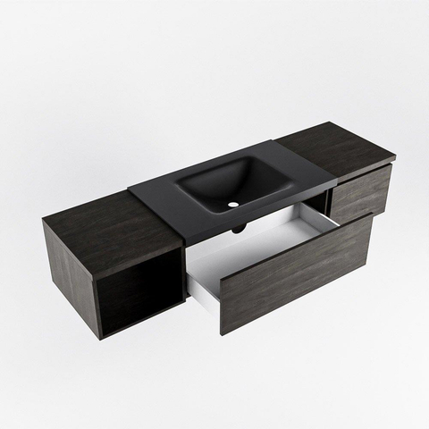 MONDIAZ BUKLA 160cm badmeubel met open module 40 links kleur Dark Brown met 2 lades. Wastafel CLOUD midden 1 kraangat kleur Urban.