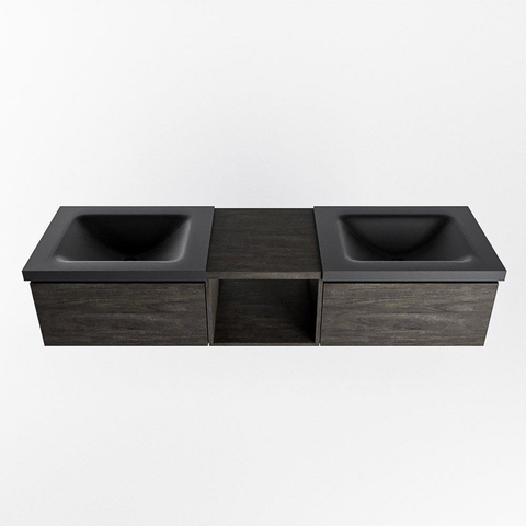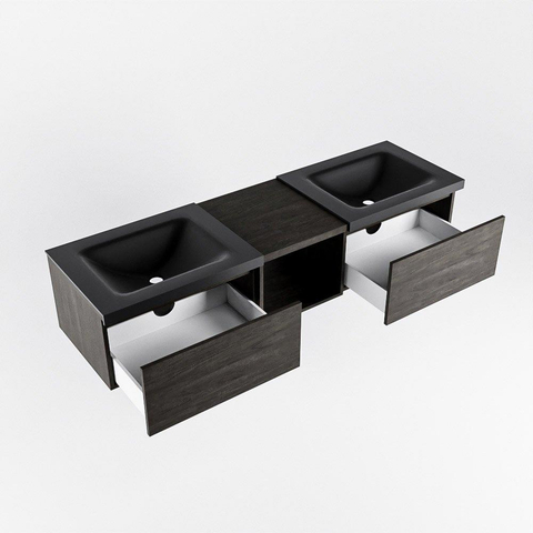 MONDIAZ BUKLA 160cm badmeubel met open module 40 kleur Dark Brown met 2 lades. Wastafel CLOUD dubbel 0 kraangaten kleur Urban.