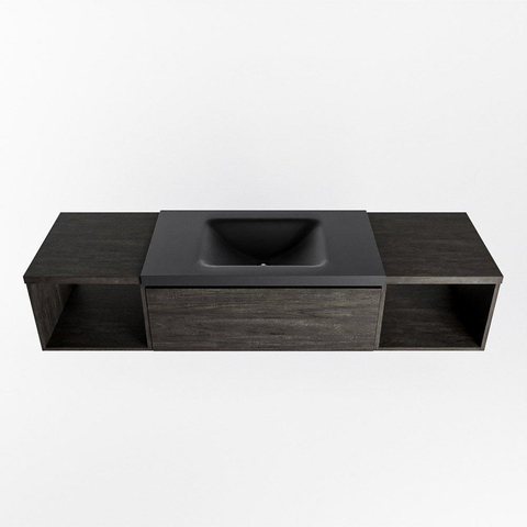 MONDIAZ BUKLA 160cm badmeubel met open module 40 L+R kleur Dark Brown met 1 lade. Wastafel CLOUD midden 1 kraangat kleur Urban.