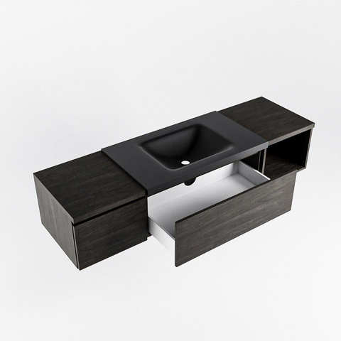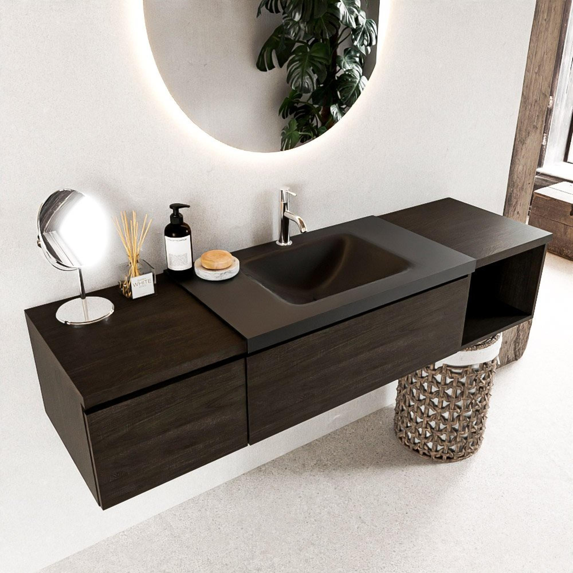 MONDIAZ BUKLA 160cm badmeubel met open module 40 rechts kleur Dark Brown met 2 lades. Wastafel CLOUD midden 1 kraangat kleur Urban.