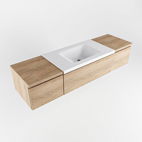 MONDIAZ BUKLA 160cm badmeubel met module 40 kleur Washed Oak met 3 lades. Wastafel CLOUD midden 0 kraangaten kleur Talc.