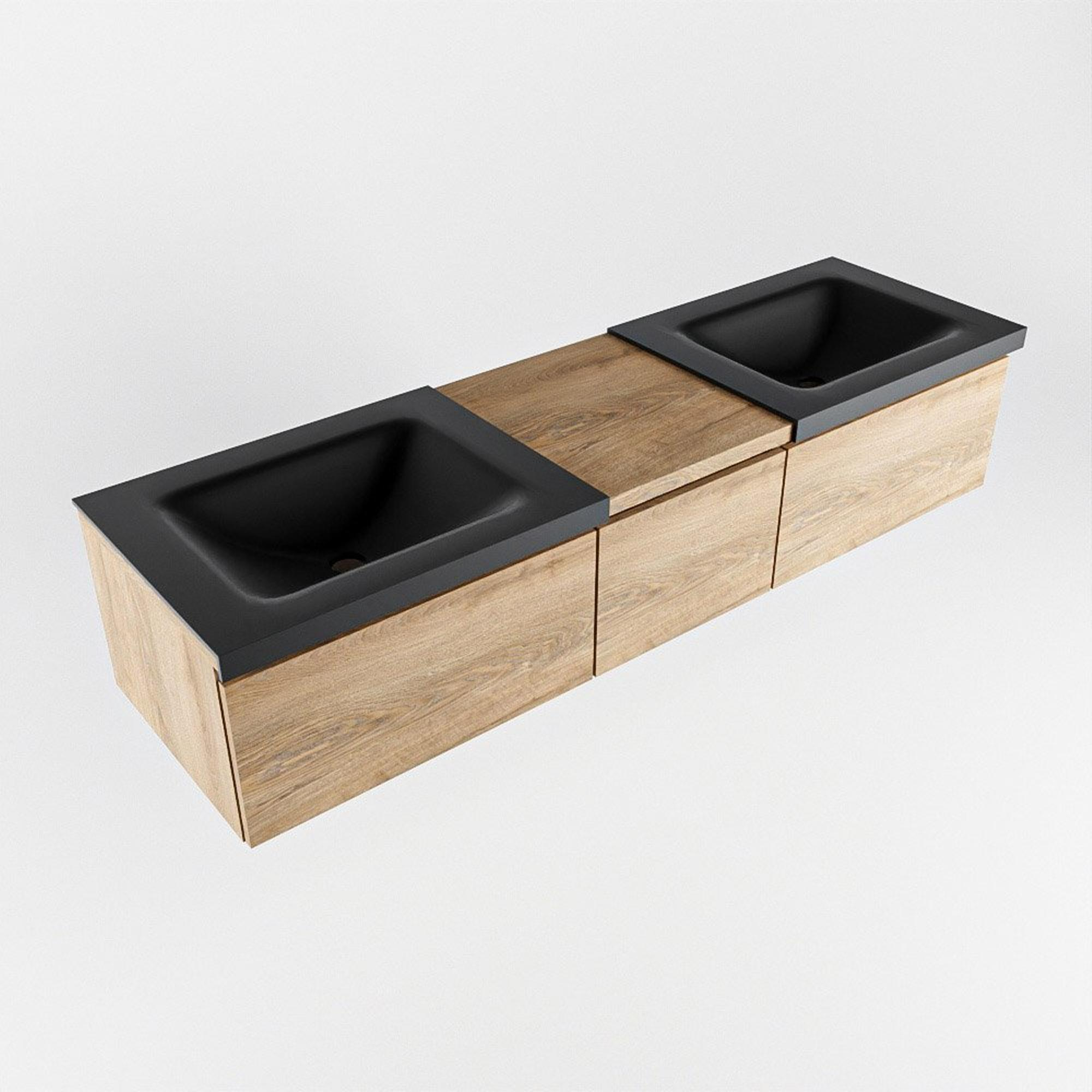 MONDIAZ BUKLA 160cm badmeubel met module 40 kleur Washed Oak met 3 lades. Wastafel CLOUD dubbel 0 kraangaten kleur Urban.