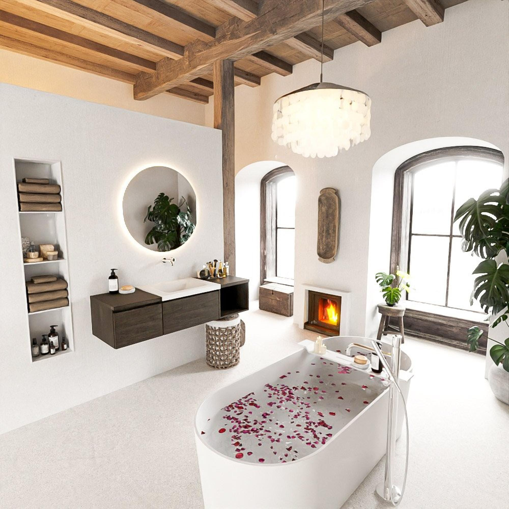 - Kleur: Dark Brown (badmeubel) en Talc (wastafel)