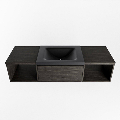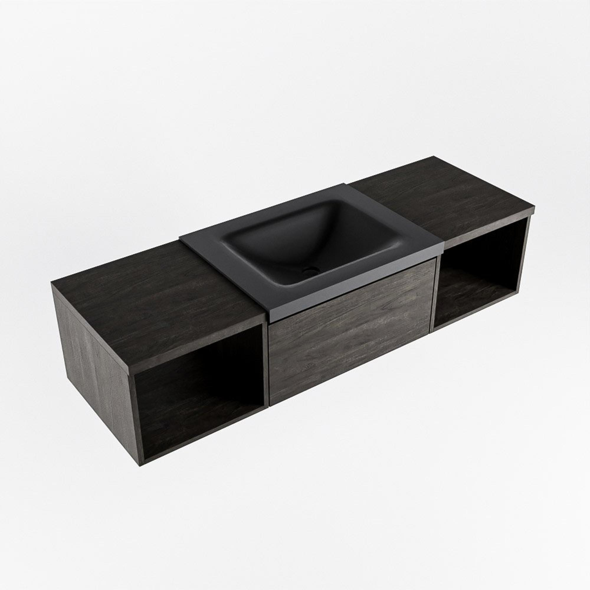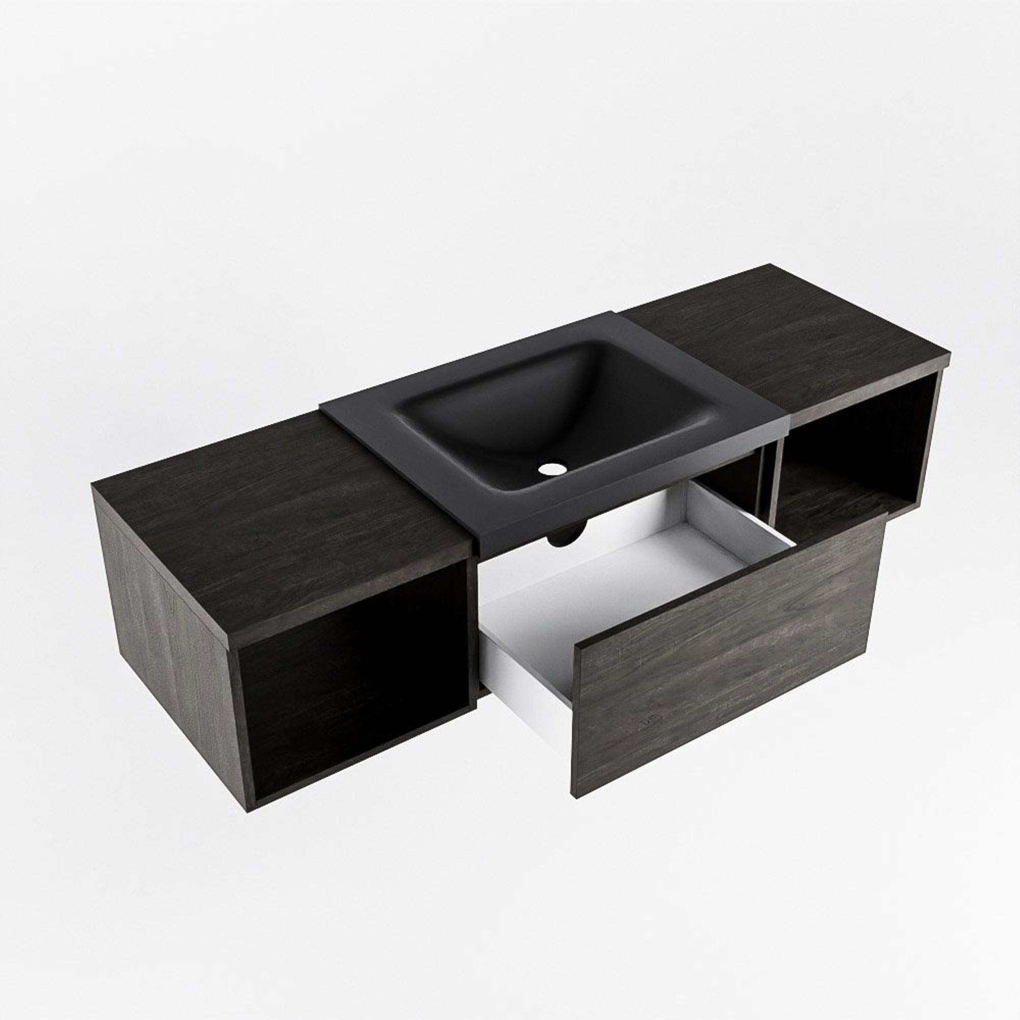 MONDIAZ BUKLA 140cm badmeubel met open module 40 L+R kleur Dark Brown met 1 lade. Wastafel CLOUD midden 1 kraangat kleur Urban.