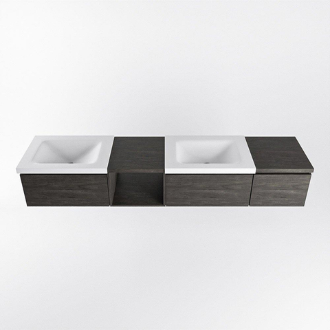 MONDIAZ BUKLA 200cm badmeubel met open module 40 links kleur Dark Brown met 3 lades. Wastafel CLOUD dubbel 0 kraangaten kleur Talc.