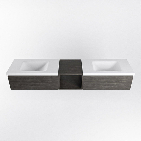 MONDIAZ BUKLA 200cm badmeubel met open module 40 kleur Dark Brown met 2 lades. Wastafel CLOUD dubbel 0 kraangaten kleur Talc.
