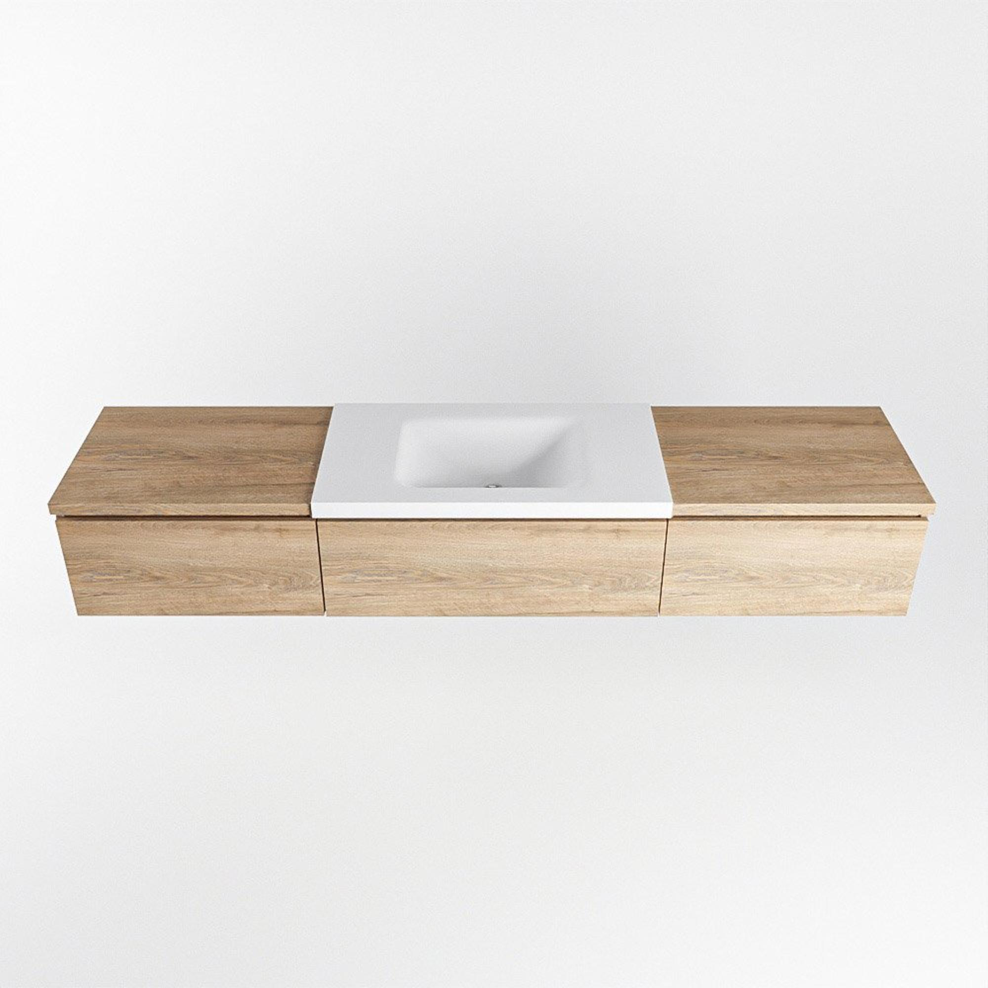 MONDIAZ BUKLA 200cm badmeubel met module 60 kleur Washed Oak met 3 lades. Wastafel CLOUD midden 1 kraangat kleur Talc.