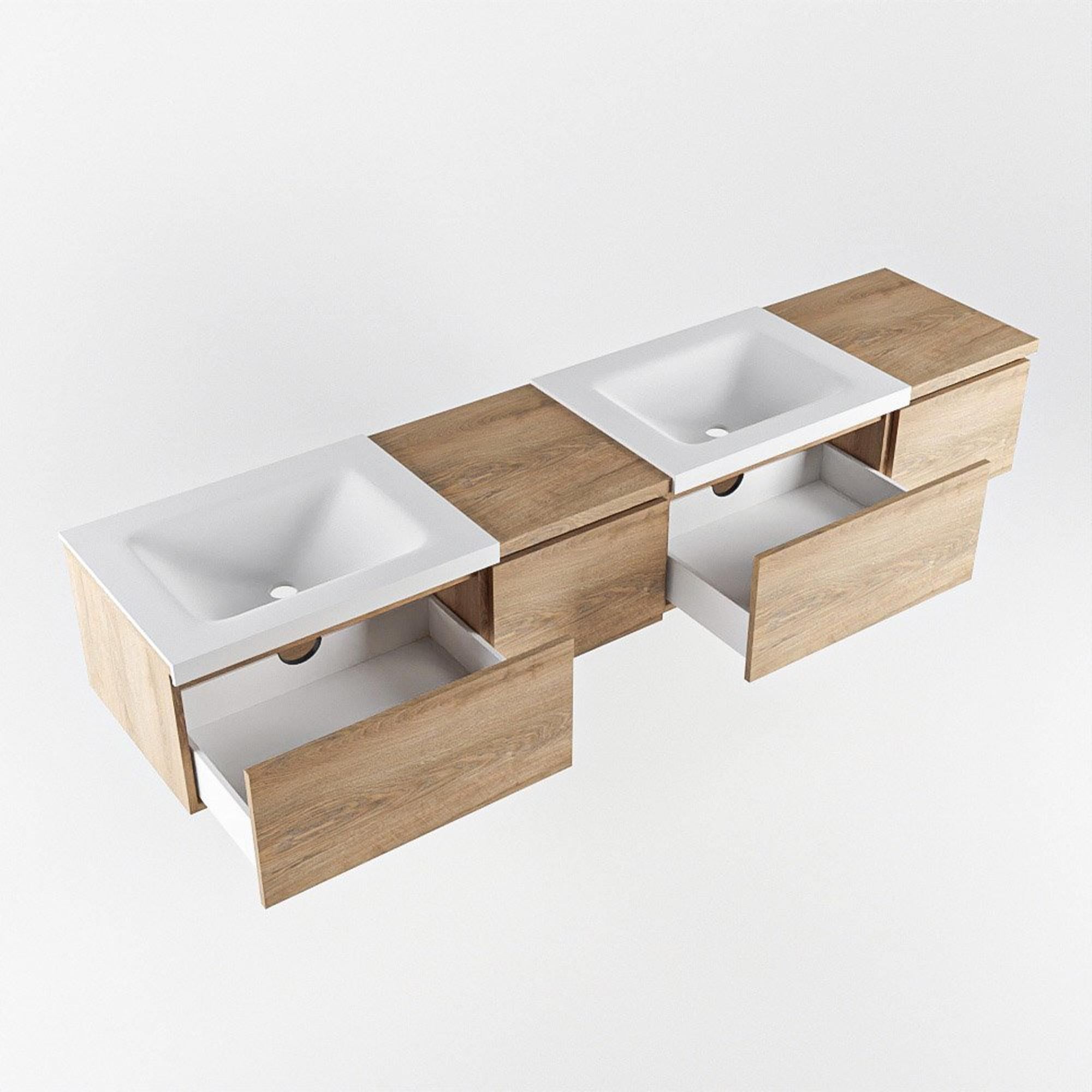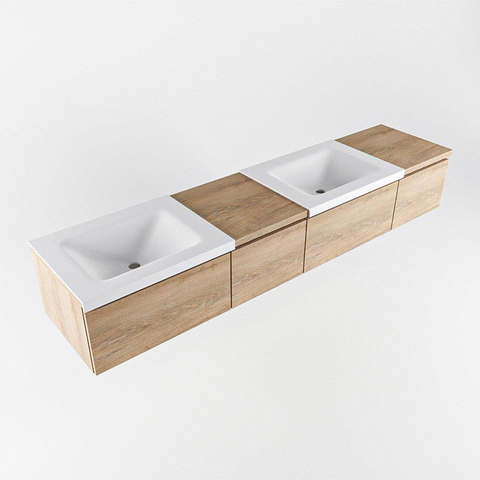 MONDIAZ BUKLA 200cm badmeubel met module 40 links kleur Washed Oak met 4 lades. Wastafel CLOUD dubbel 0 kraangaten kleur Talc.