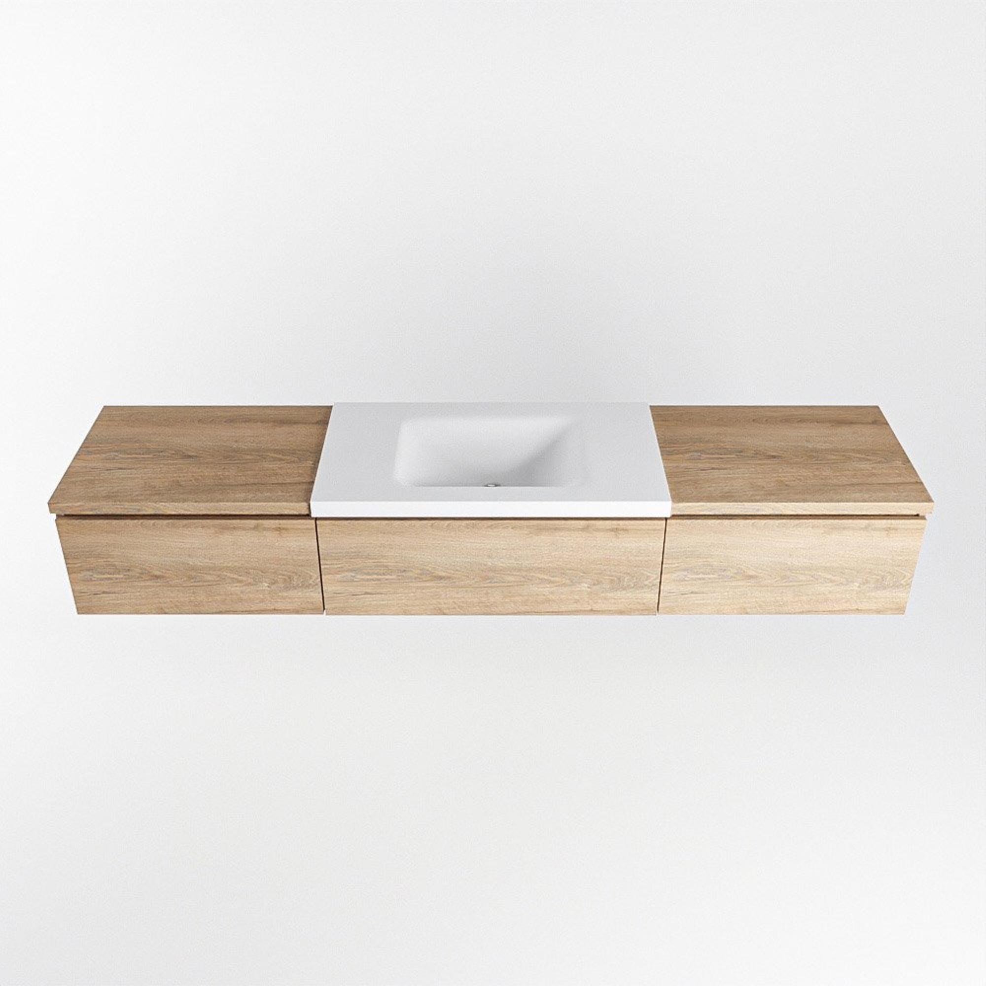 MONDIAZ BUKLA 200cm badmeubel met module 60 kleur Washed Oak met 3 lades. Wastafel CLOUD midden 0 kraangaten kleur Talc.