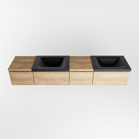 MONDIAZ BUKLA 200cm badmeubel met module 40 rechts kleur Washed Oak met 4 lades. Wastafel CLOUD dubbel 0 kraangaten kleur Urban.